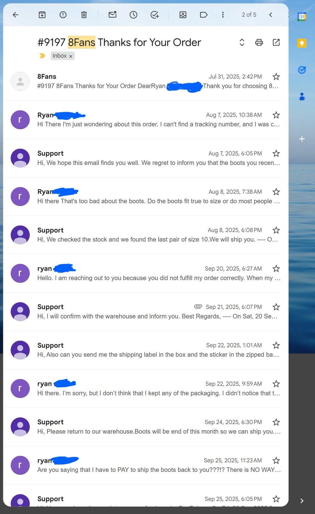 3 separate times, after I told them I wasn’t paying to fix their mistake, they asked me to pay to ship their garbage boots back to them.