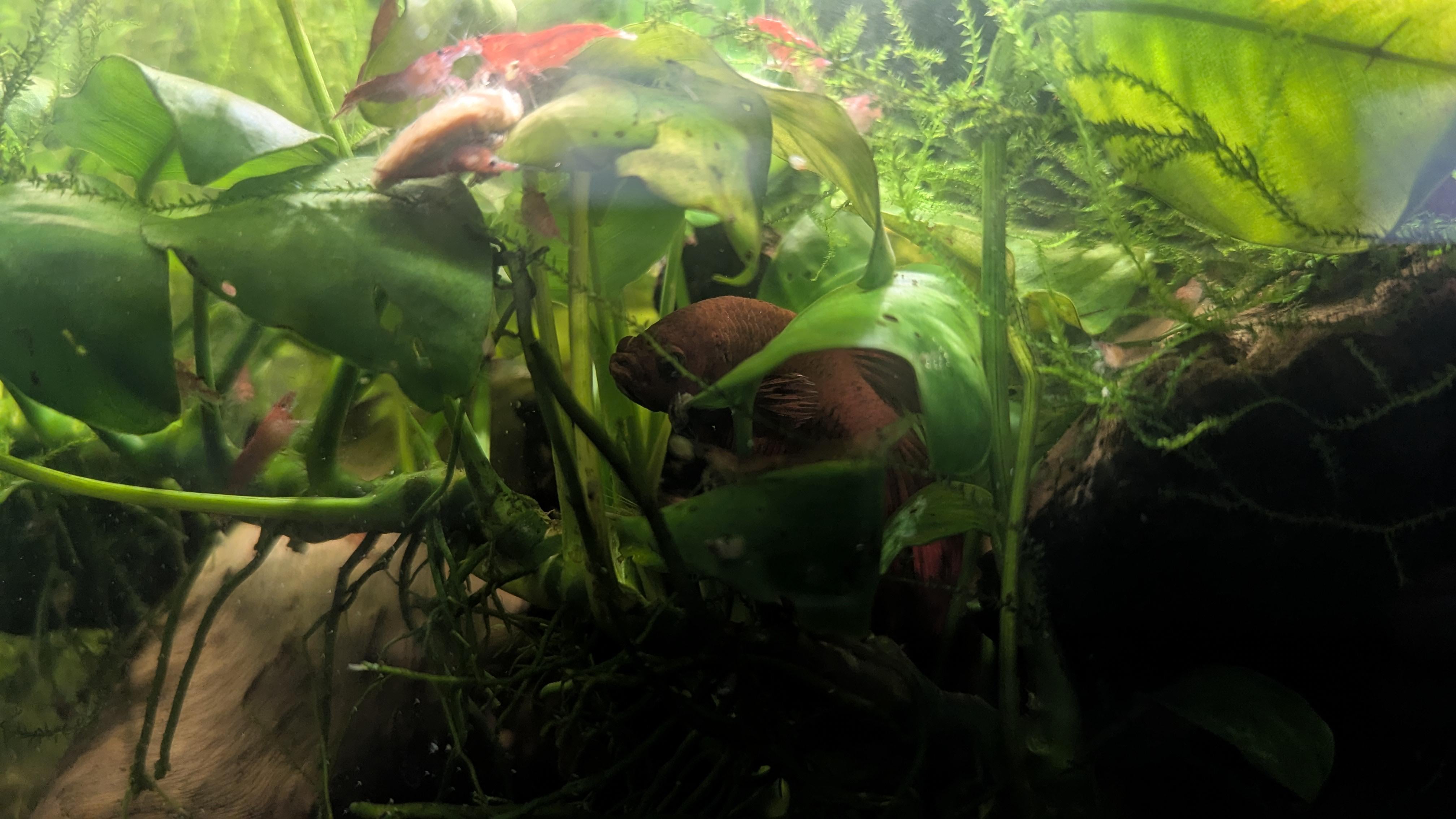 This is Po and he lives amongst the shrimp. Never have I ever seen him attack one. He kinda just.. watches them. I think of them as fish TV for him. https://i.redd.it/r2vd78ic125g1.jpeg Posted by PlzDontTakeMyAdvice