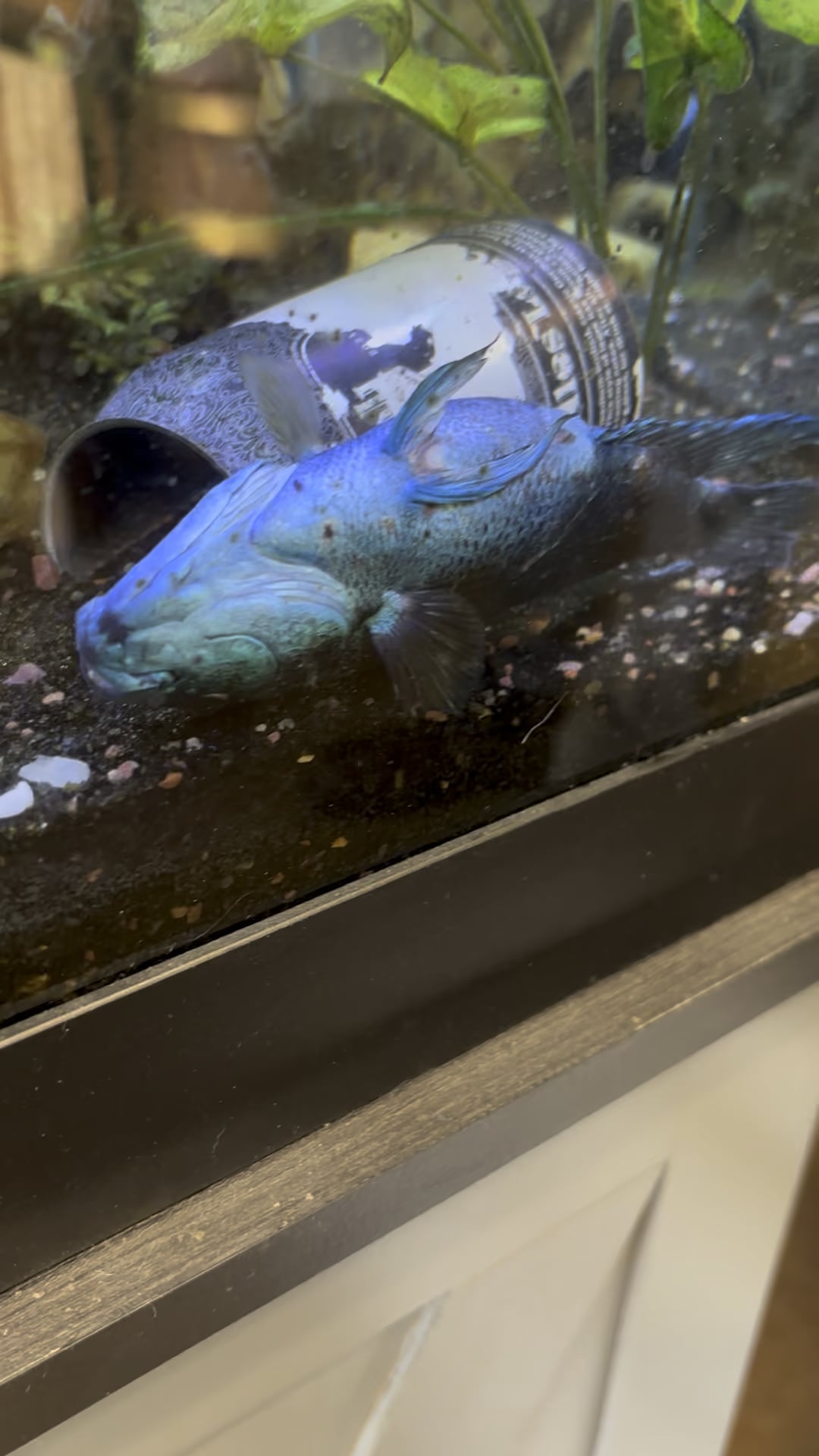He’s likely not going to make it. Looks like swim bladder disease. But, we’ll pray he pulls thru.