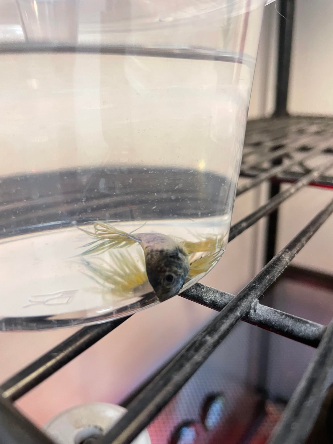 I work at a pet store and I want to know what’s best for these 2. The crown tail despite how he looks in the photos is alive. His water was SO FUCKING COLD I ran to the wellness room where it’s warm and put him near our heat lamps for the reptiles. The other one is a delta tail and he is VERY bloated. I have a 2.5 I can makeshift into a hospital tank if need to as I have an existing beta tank that was just cleaned so the nitrate isn’t high. Please tell me what I can do for these poor babies.