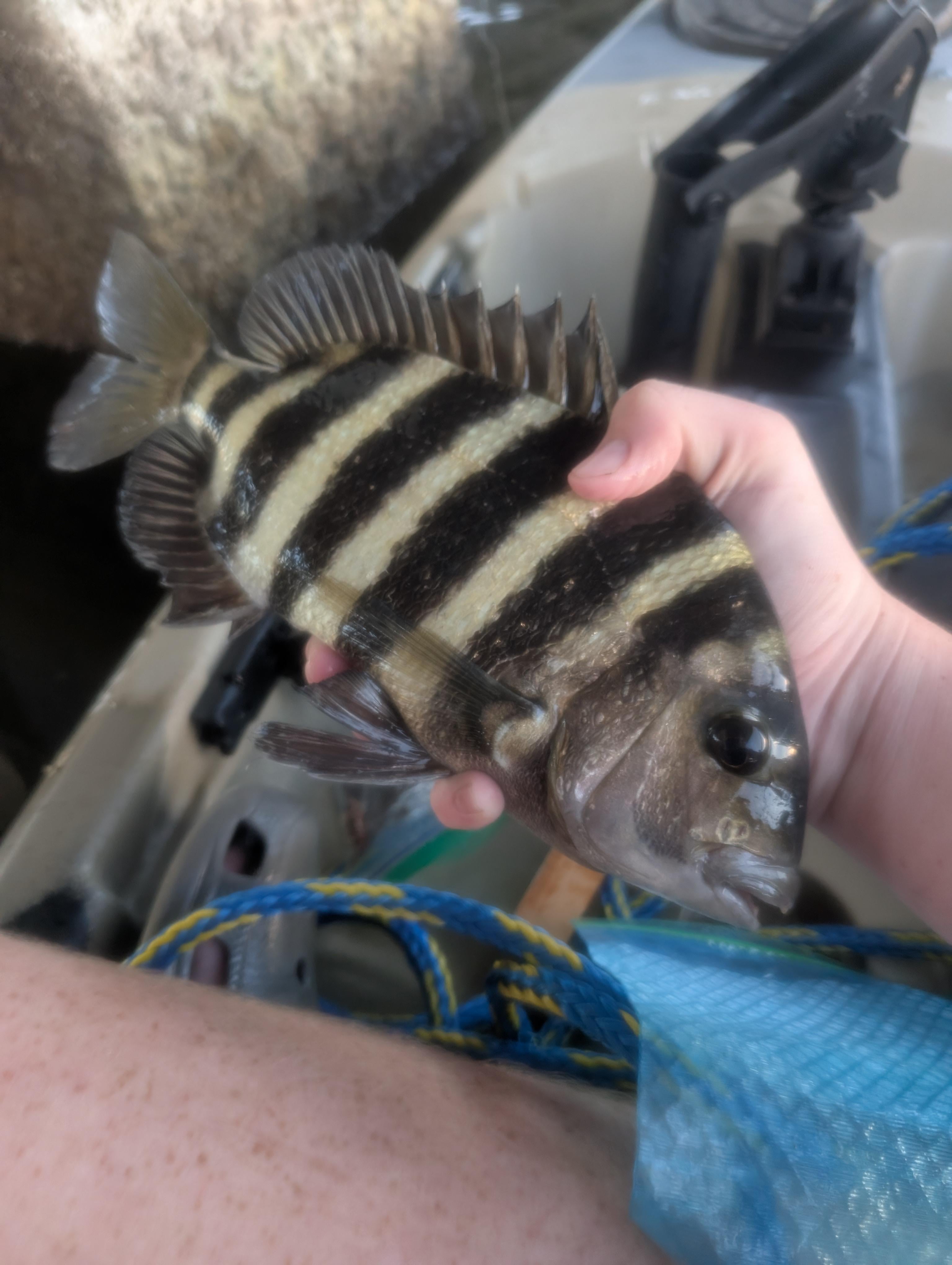 Decided to try this railroad bridge that's like a 20 min paddle from my house. Was mainly going to go for drum but got some fiddlers too I'm case of sheepshead. I had caught like 5 prior to today, all below 8 inches. But I was waiting for my blue crab to thaw out and I decided to drop a fiddler straight down at the piling. From my experience with the little sheeps they would just tap and steal your bait. My rod tip bent for a full three seconds and I set the hook on this guy. Caught one more keeper afterwards and gonna try again next weekend. Tight lines all 🎣