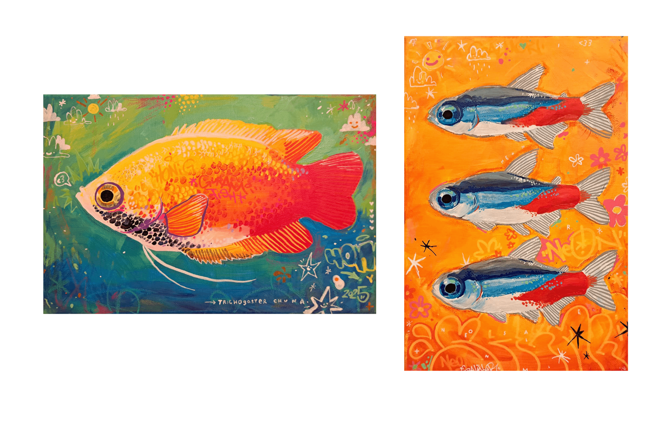 My gourami and neon tetras on canvas 🙂