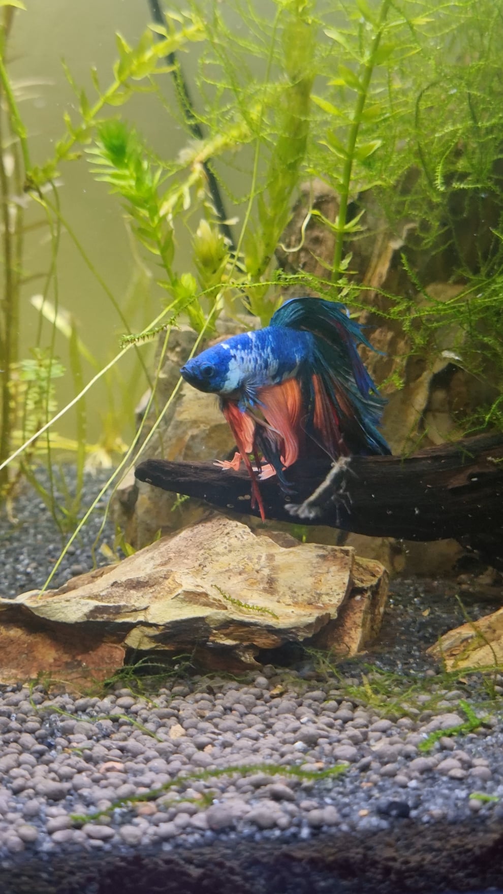 My betta on attacccc mode then suddenly reminding himself that he doesnt eat his "friends"