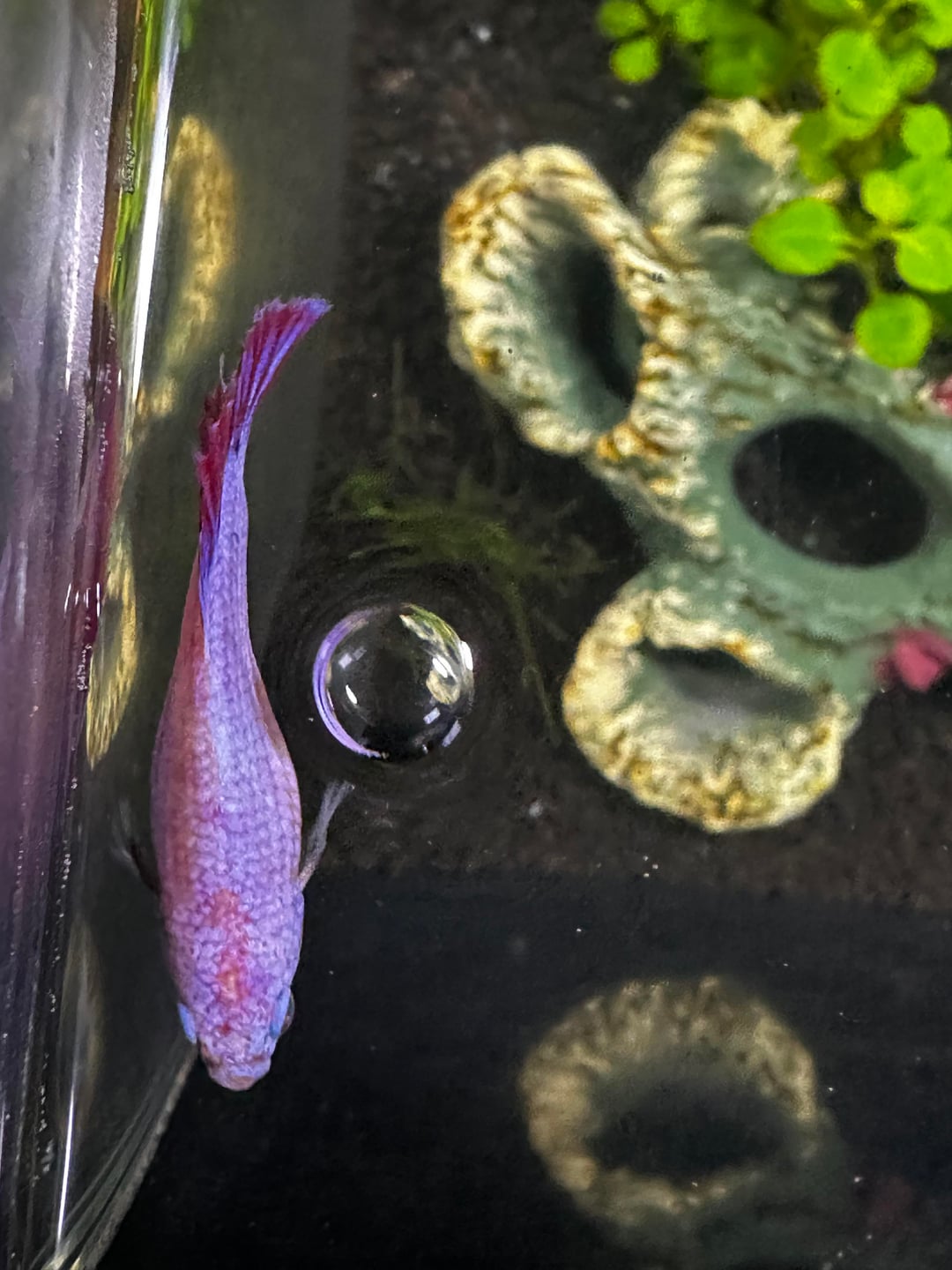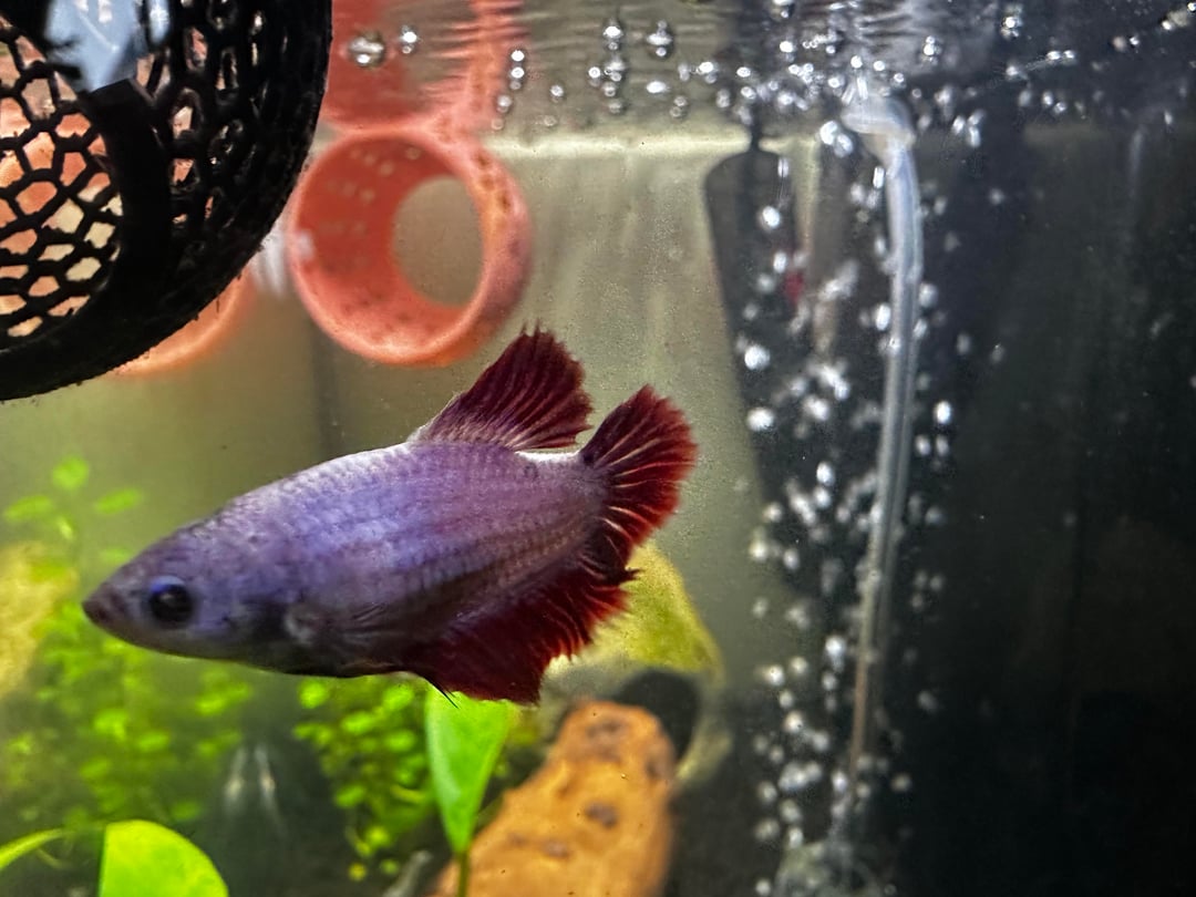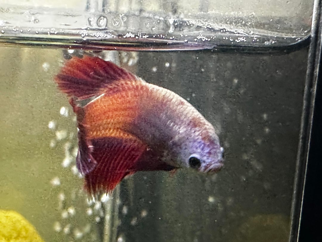 I bought this pretty betta about a 2 months ago she was kinda heavier looking compared to when I bought my male about a couple week before( they are in separate tanks). Today I was trying to take a good look at her because she looks a little more heavy than when I got her but I can’t tell if she’s pine coning. These are my first bettas and I’m trying to do everything right
