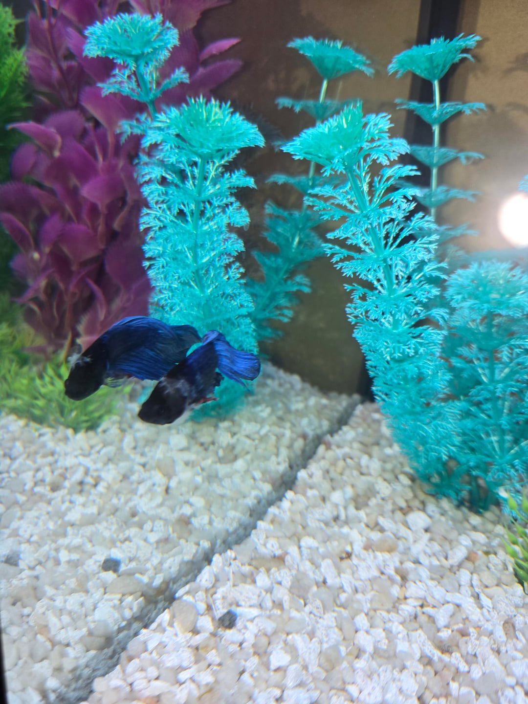 Note that I got the little guy with damaged fins, the his fully black and blue. I was hoping to nurse him back to health.