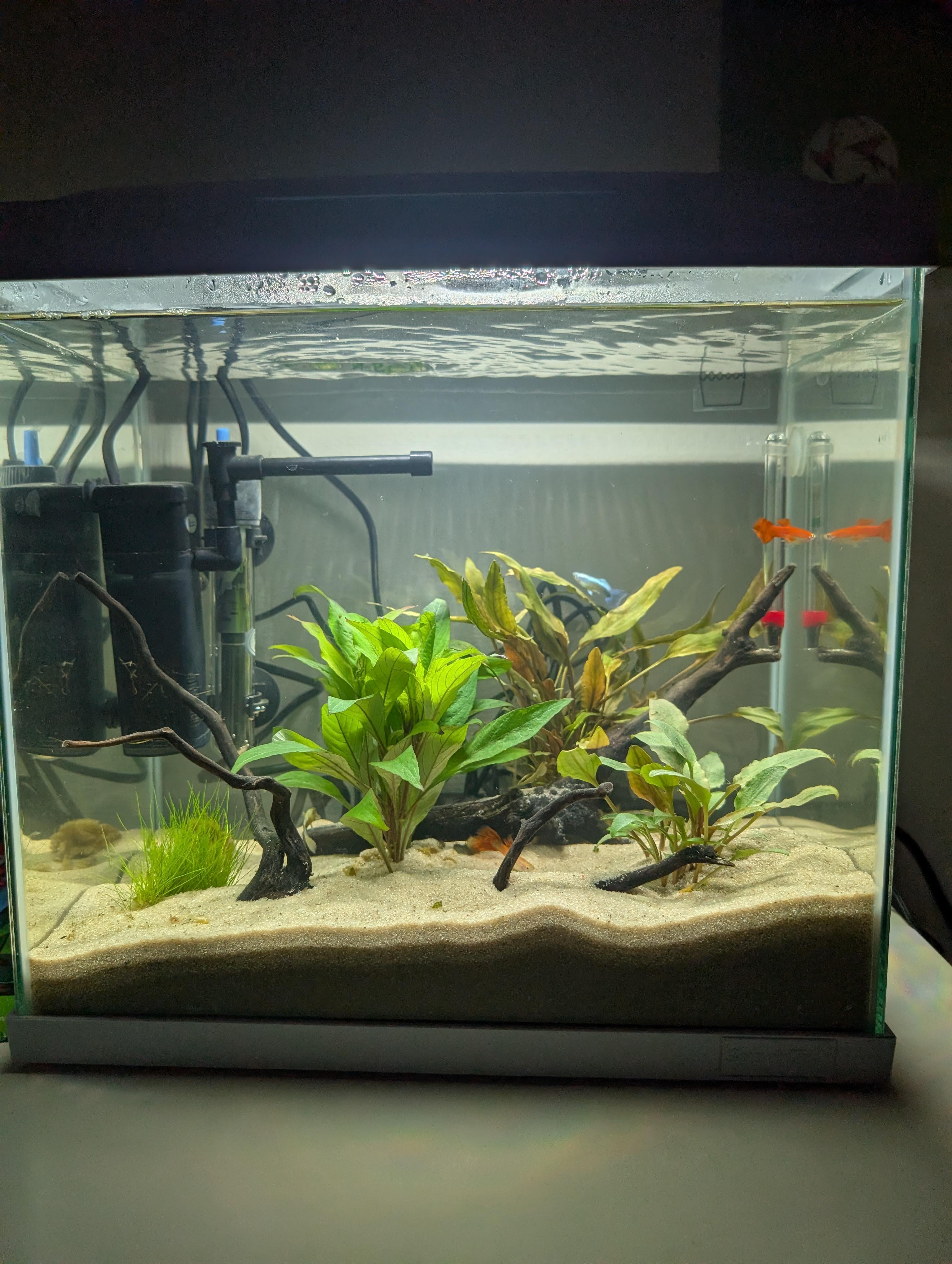 P.S. We’re also planning to get some fish or shrimp that help clean algae or the bottom of the tank.