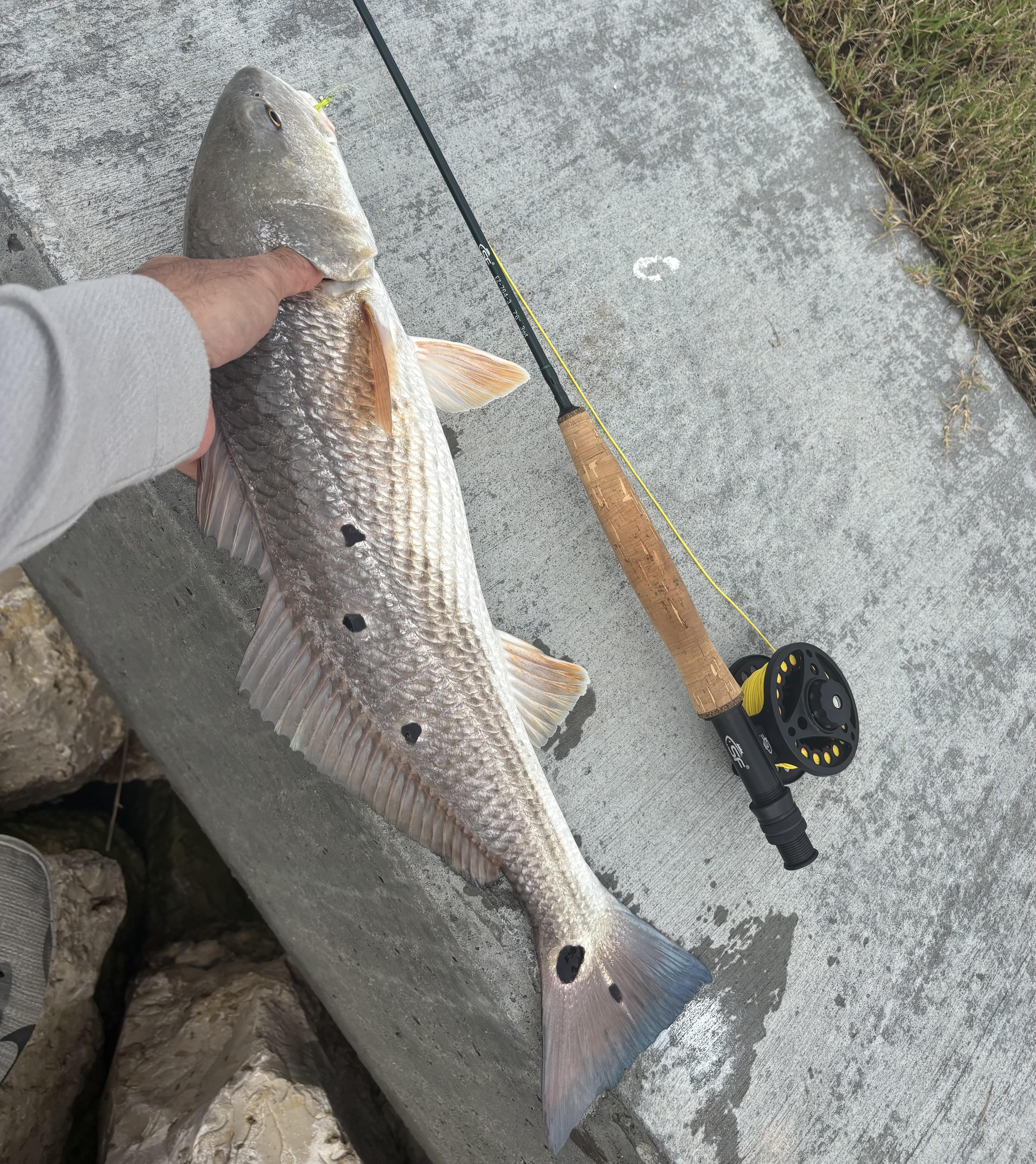 Caught this guy off a seawall, he was probably around 20” and put up a heck of a fight on an ultralight rod!