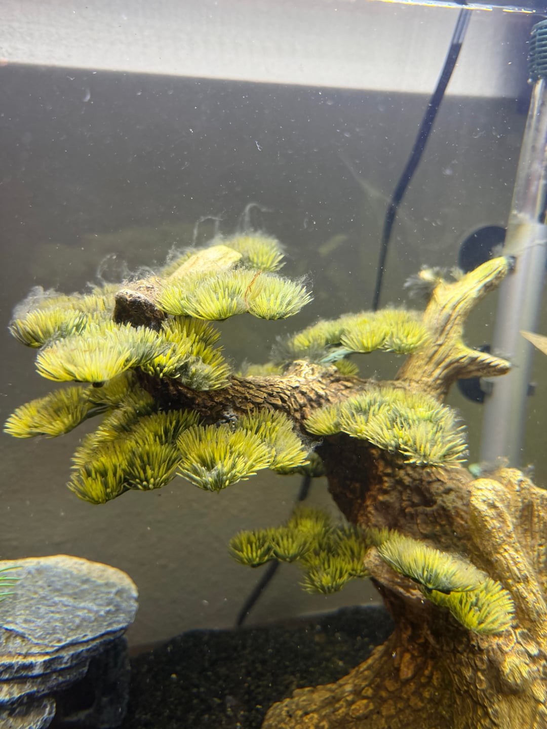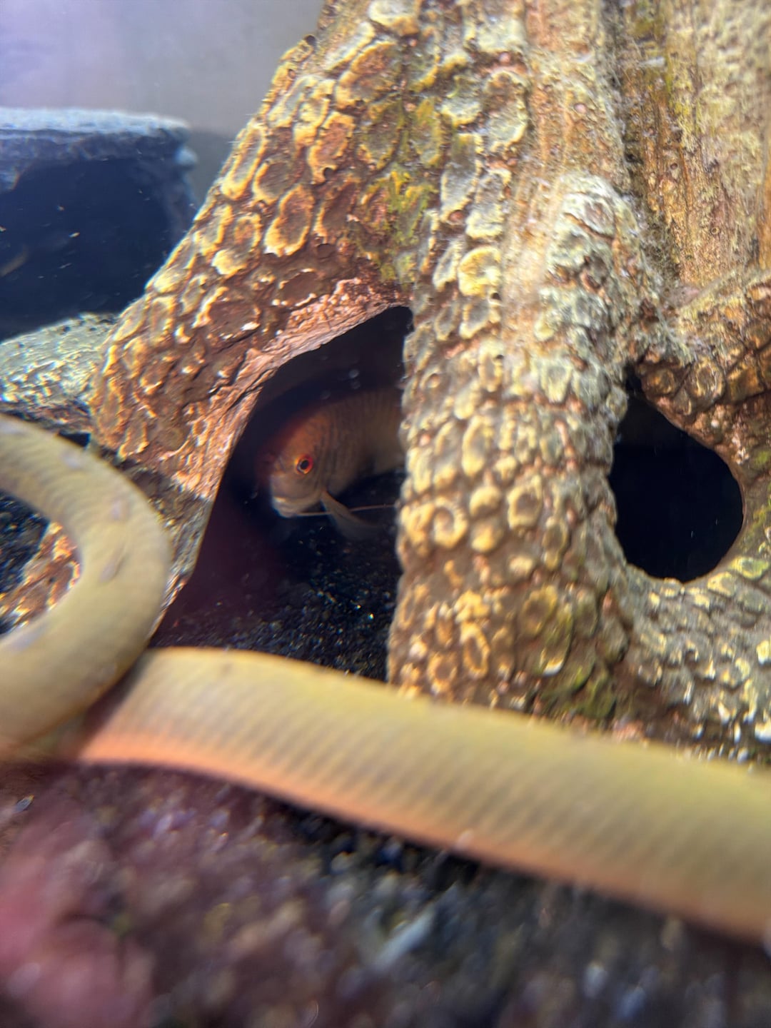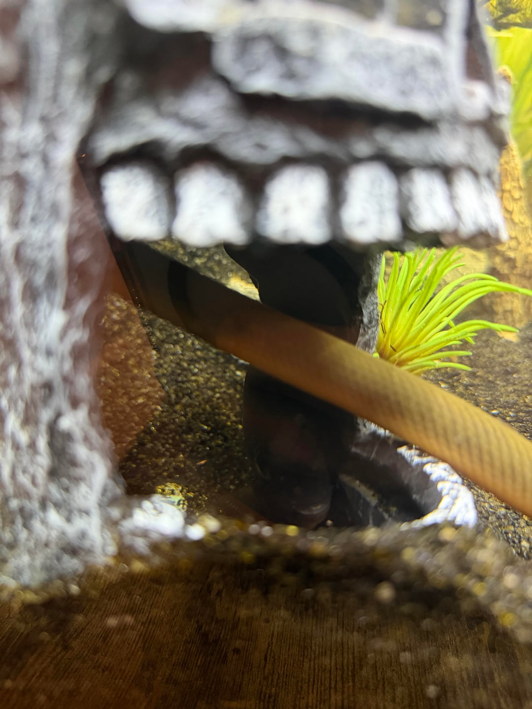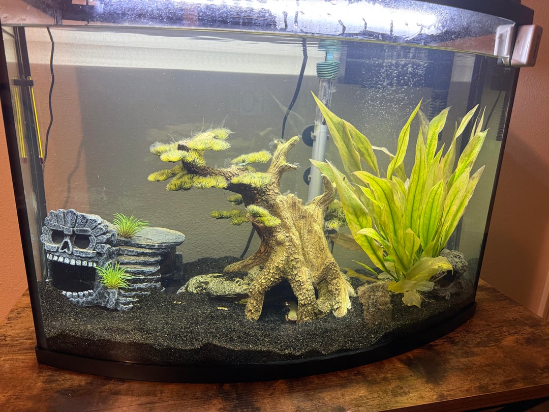 I think there is something very wrong… I have a Cupid cichlid, a gourami and 2 rope fish and they all look stressed and have been hiding for a while. My plant also recently died and I got some weird looking algae. I did a water test and my parameters don’t look terrible. Help I don’t want my fish to die.