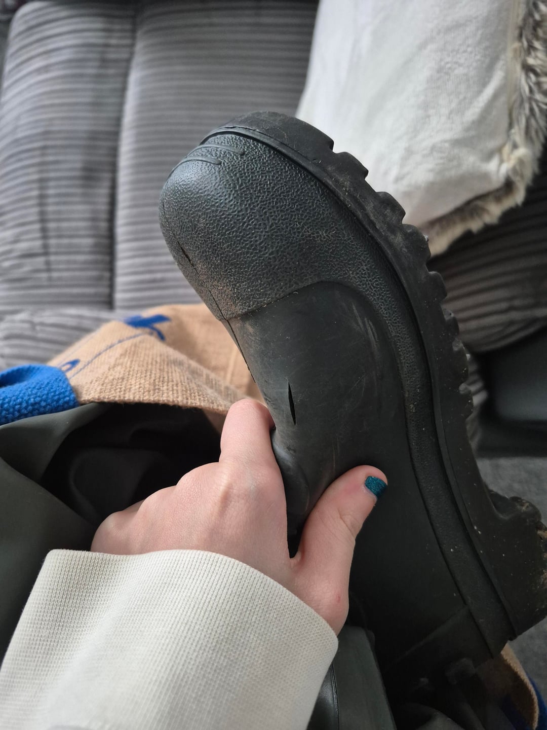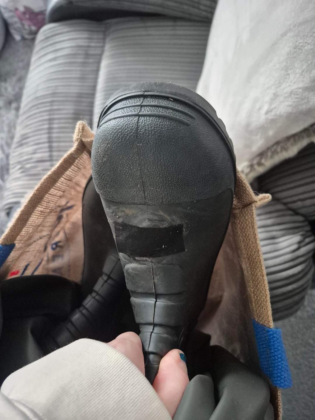 On the foot with top slice, I've tried using aquasure (and then a unholy amount of aquasure). But due to the walking and wader through rough terrain, it just spilts from the tension. Yesterday, I slapped a bit of tape on the top as a quick fix, then sliced the side of the other foot.