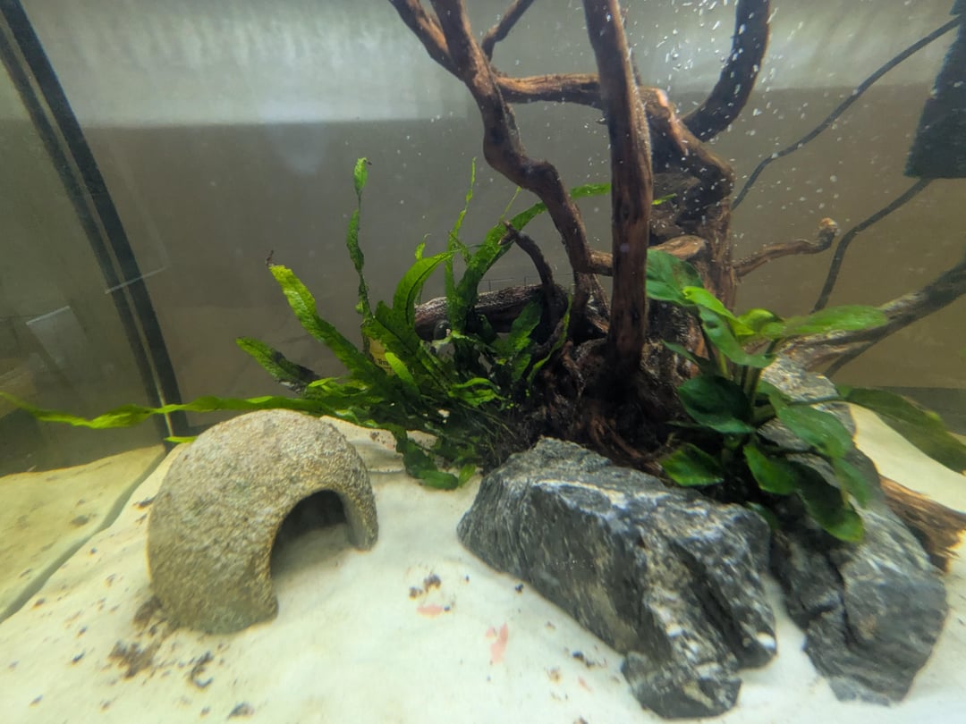 • added 3 natural plants ( anubia, microsotum mini and a limnophilia ) because I read a bit before going to the store and the guy convinced me and( probably very well )that I should have natural plants. I have also an artificial one in the back. Do the plants look healthy to you?