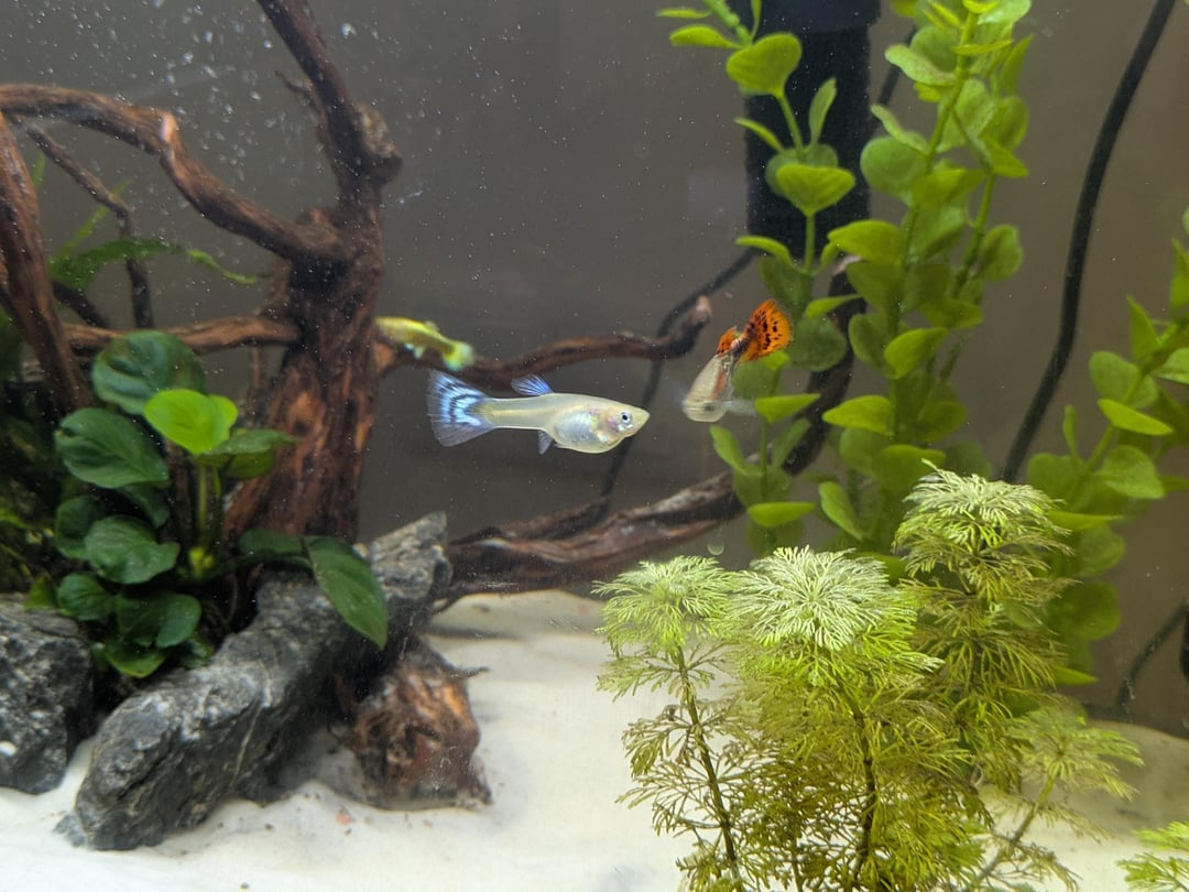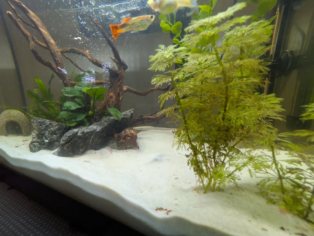 • added guppies ( 1 male and 2 females) on the same day than plants