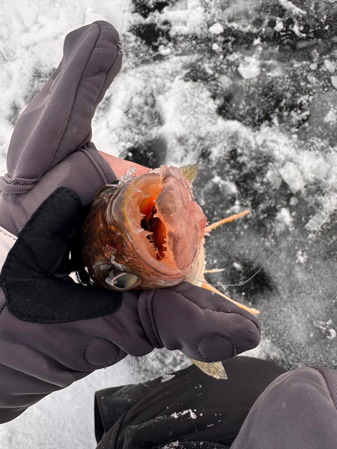 My dad is visiting from WI for the weekend, so we had to hit the ice this morning! Getting this lake dialed in now. Vmc rattle spoons (orange/silver) was the ticket today. I’ve been replacing the stock treble with a bladed treble and have had good results. Peep the second pic – they were crushing it!