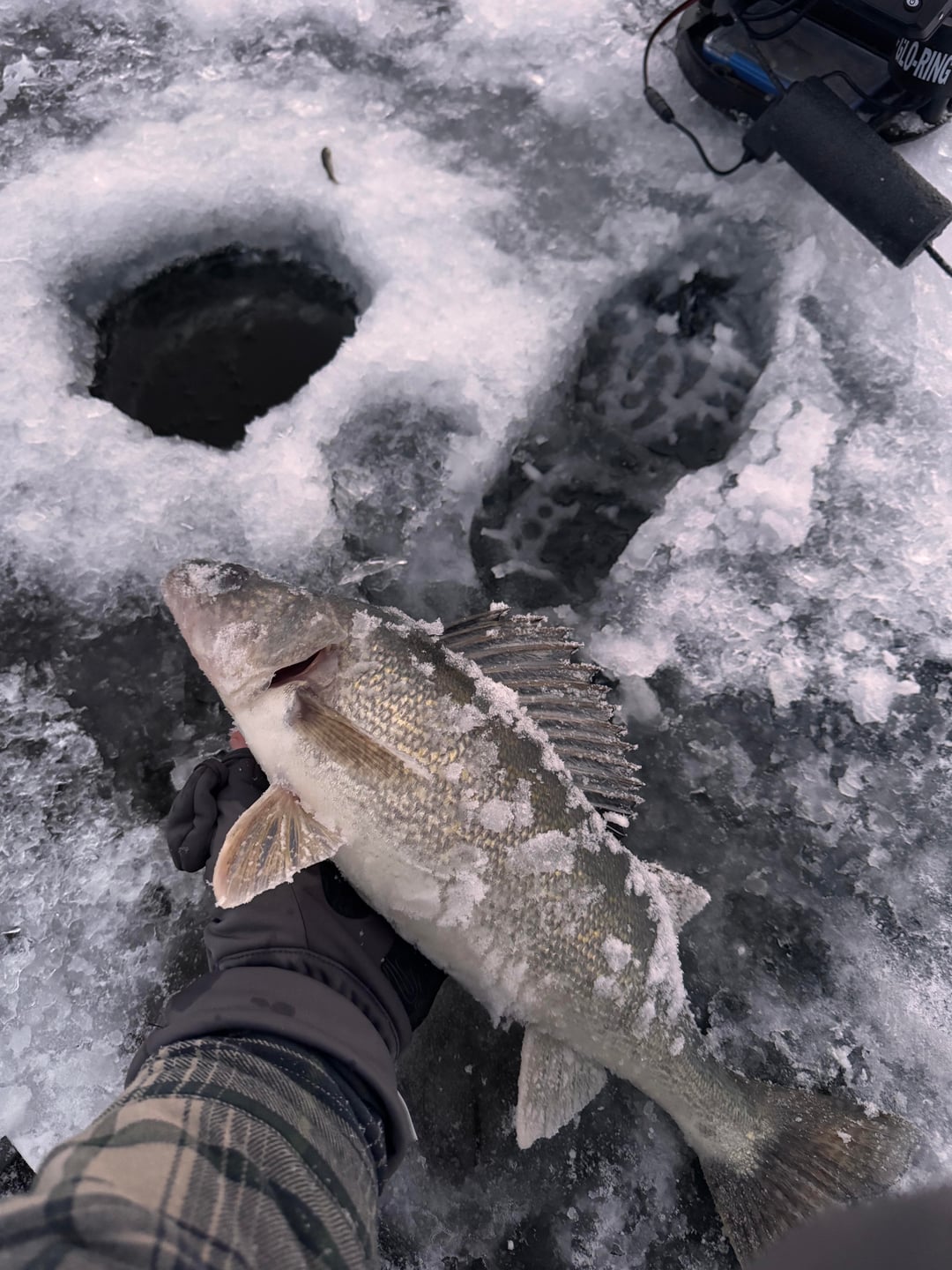 Drilled a lot of holes and stayed mobile – fish were in 10-14 fow today. 5 eyes, 1 LM, and a bunch of crappie.