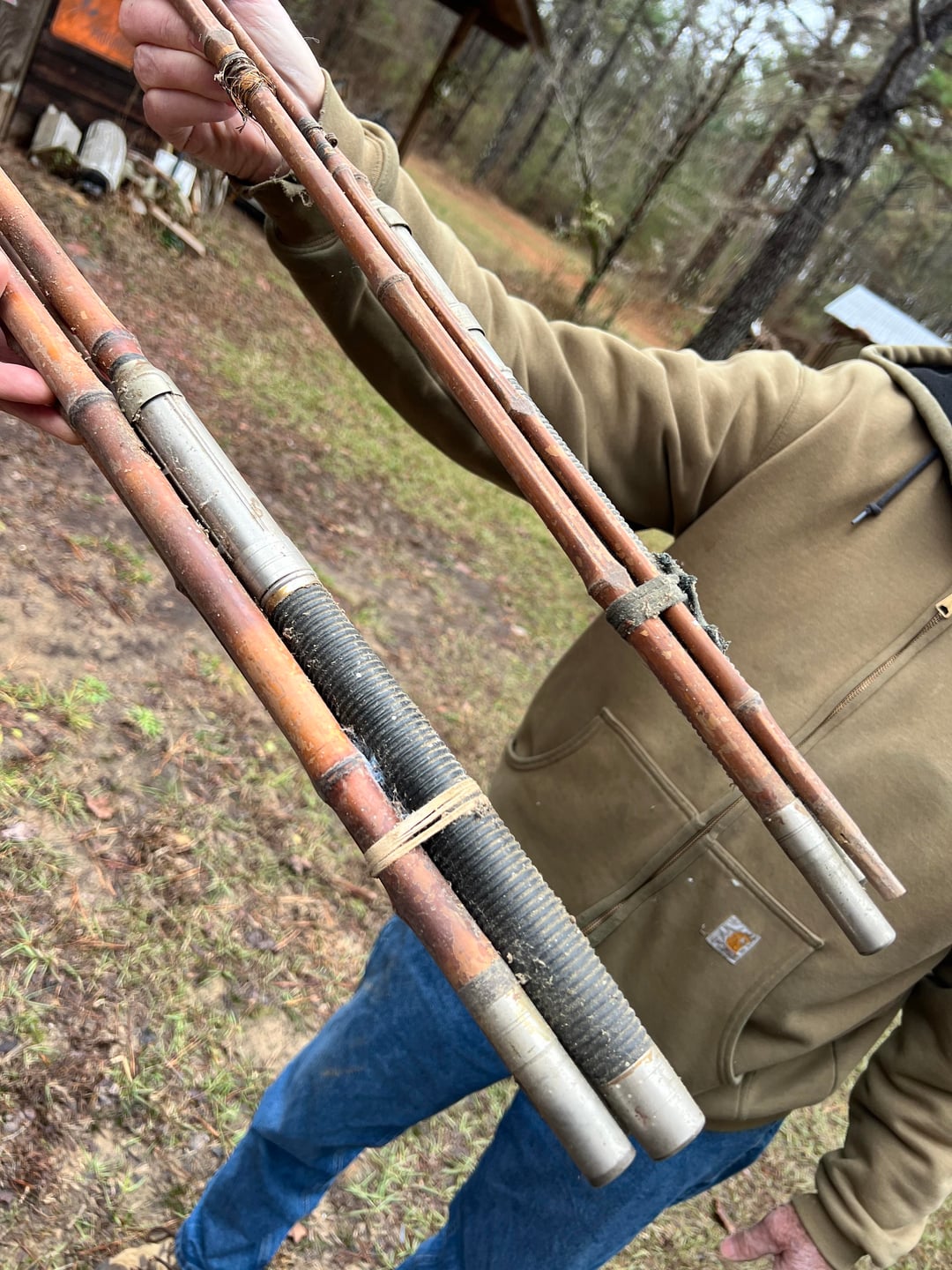 Any ideas what these are? Maybe vintage bamboo casting rods? No mfg info or other writing on them