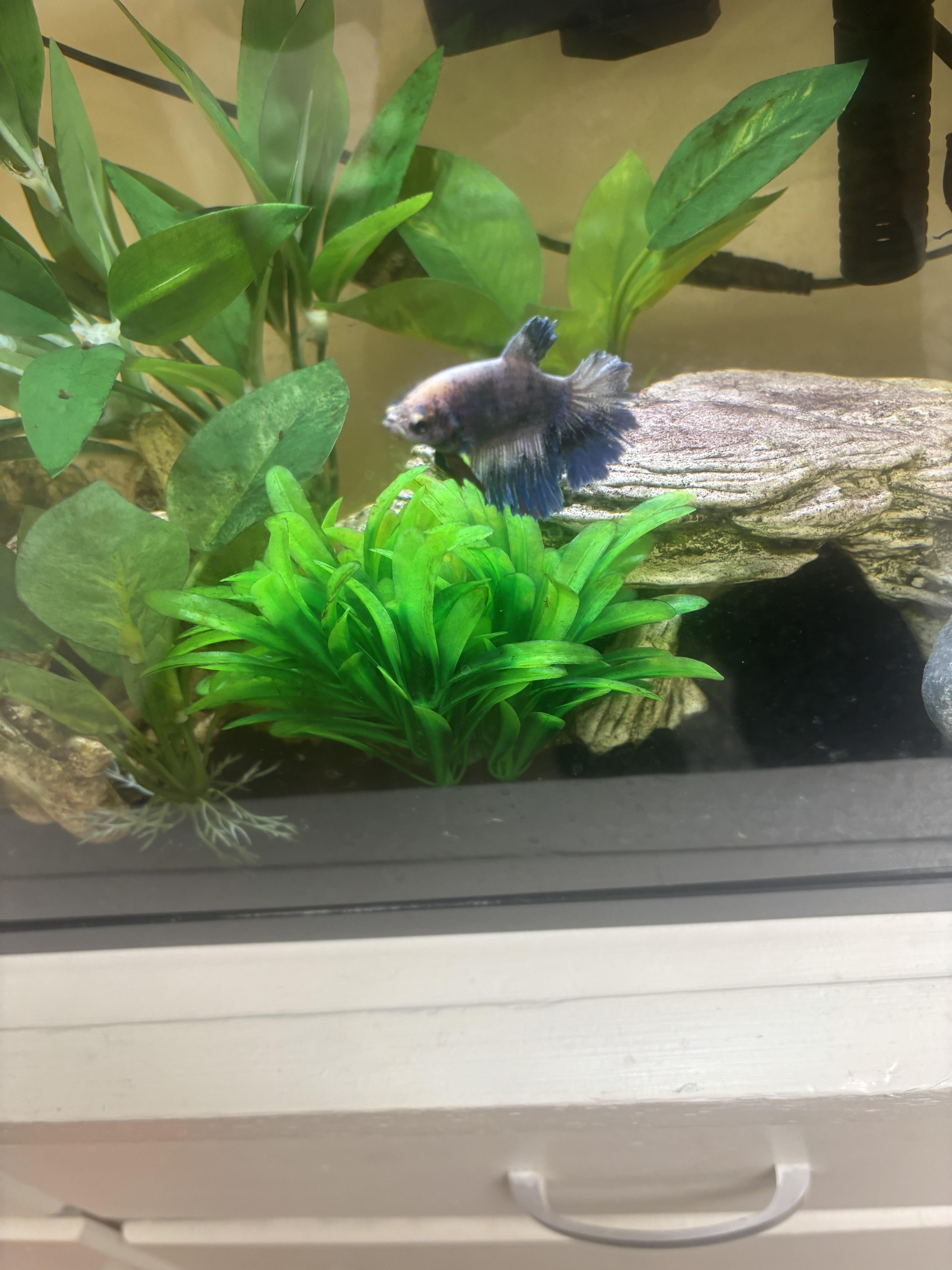 I’ve had this betta for about a year and two months. I believe she is around 2 years old though. I have her in a five gallon tank with a mix of real and fake plants along with wood for tannins. I was gone for a week for Thanksgiving break and I left her one of those Top Fin dissolving feeder blocks. I’ve used those several times over the past year and had 0 issues with them whatsoever. But this time when I returned I noticed it left some weird grayish residue surrounding it. I used the gravel siphon and removed what was left of it and noticed almost a slight sulfuric smell which was not there before (my tank usually smells kinda like a river). I could tell the smell was coming from the block. She was her normal bluish purple color when I got back and by the time I got back from classes the next day, her fins and the top of her body started turning white. Her behavior is the exact same before, she is energetic, moving with my finger, and gets her food quickly. Can someone please tell me what I can do to fix this or just what is going on in general?