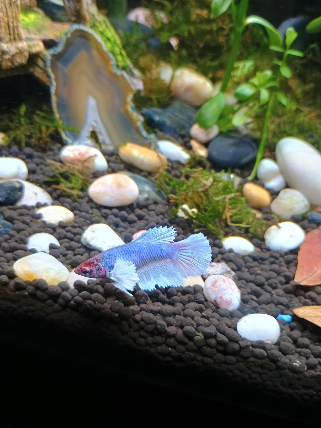 also off topic I love how colorful she is and how open her find have gotten. I got her from work and she used to be completely white and her fins used to be so small, she's so pretty and super interactive <3
