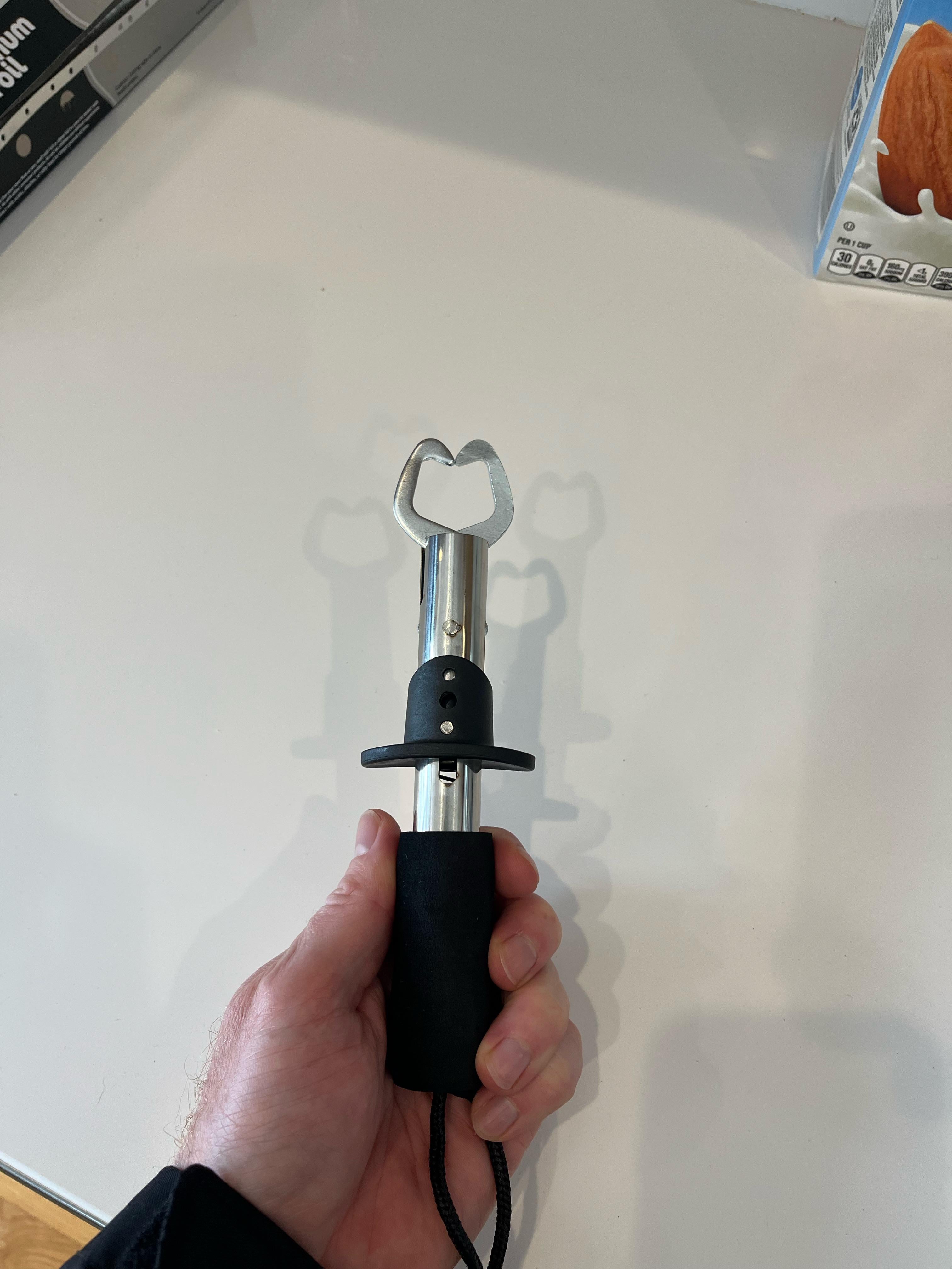 It’s a boga grip, basically a clamp you can use to grip a fish that can hurt your hands with tooth, like a pike for example.