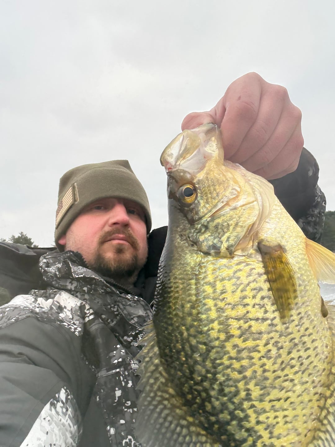 Hard water or open water, thats a giant crappie anywhere!