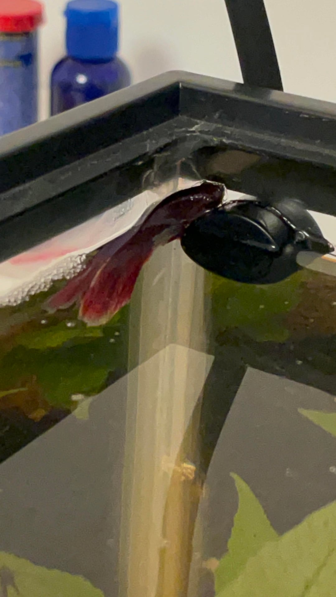Fun fact: make sure your Betta fish always have access to air, yeah they can use their gills to breathe but the act of swimming up to the surface and taking the breath is so instinctual they get stressed out if they can’t do it
