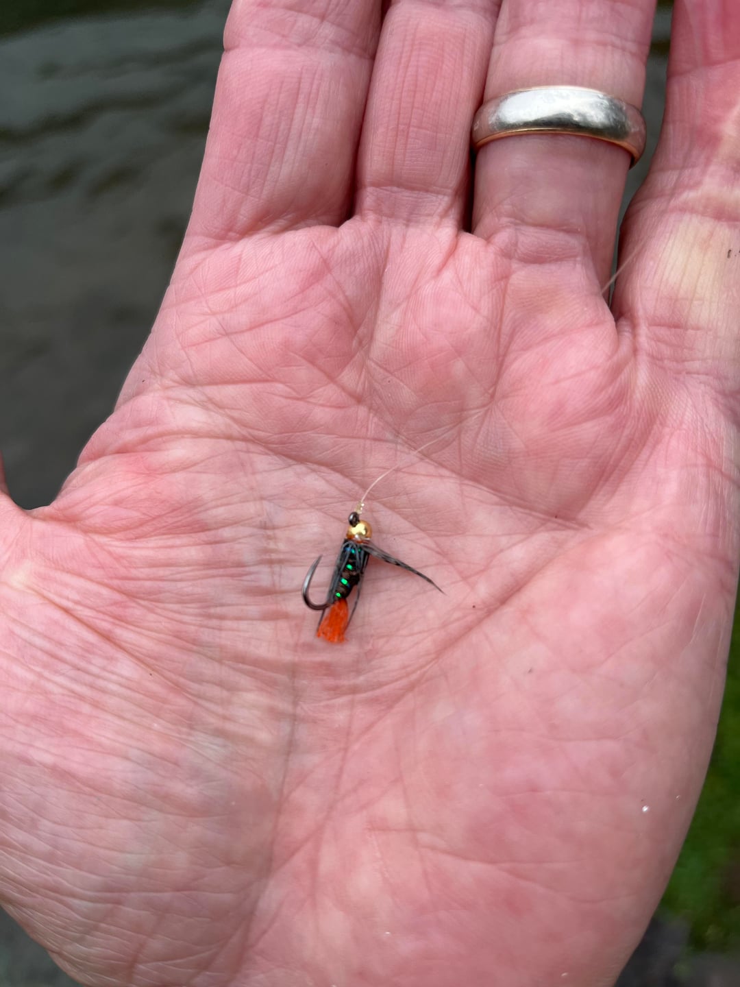 The catching really slowed at that point, but I did manage a couple more pan-sized fish over 2 hours. One ate a Perdigon (purple), while the final fish hit a tungsten Hare’s ear jig. Fun day in/on the water.