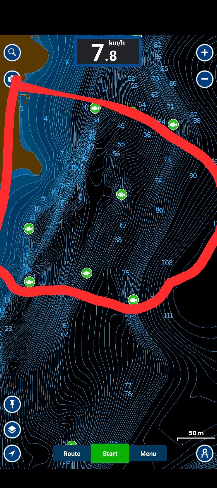 The circled area is where I am looking for feedback. Hoping to place the hut in a location that would be good for Walleye or Burbot and while Lakers are always interesting, if we are going to be out there at night/evening the Burbot/Walleye bite seems like the better focus.