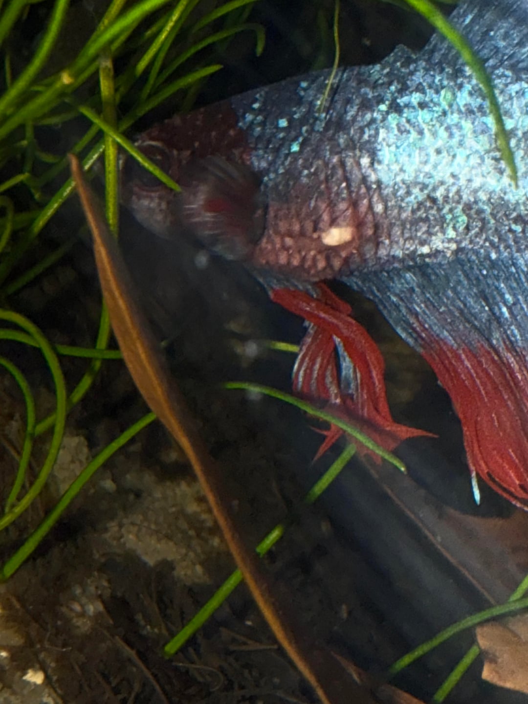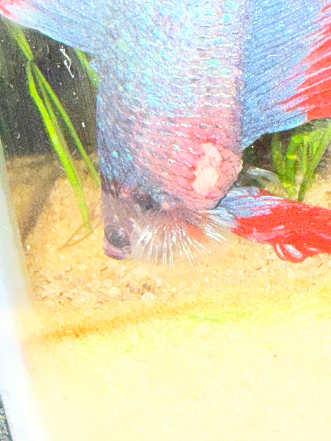 As soon as stores opened, I was off. I picked up a 5 gallon tank, a new filter, kanaplex and epsom salt. I started him on a regimen of kanaplex and salt baths every other day (respectively on alternating days), along with fasting. The second picture is him today. Pine-coning is gone on his right side, still presenting mildly on the left. His wound is healing so nicely and he’s finally active again.