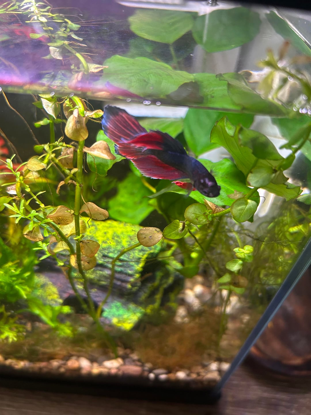 Hi everyone! I have had my betta for roughly a week. I just noticed this mark on his face, anyone know what this could be?? https://www.reddit.com/gallery/1phepa8 Posted by Coyboy07