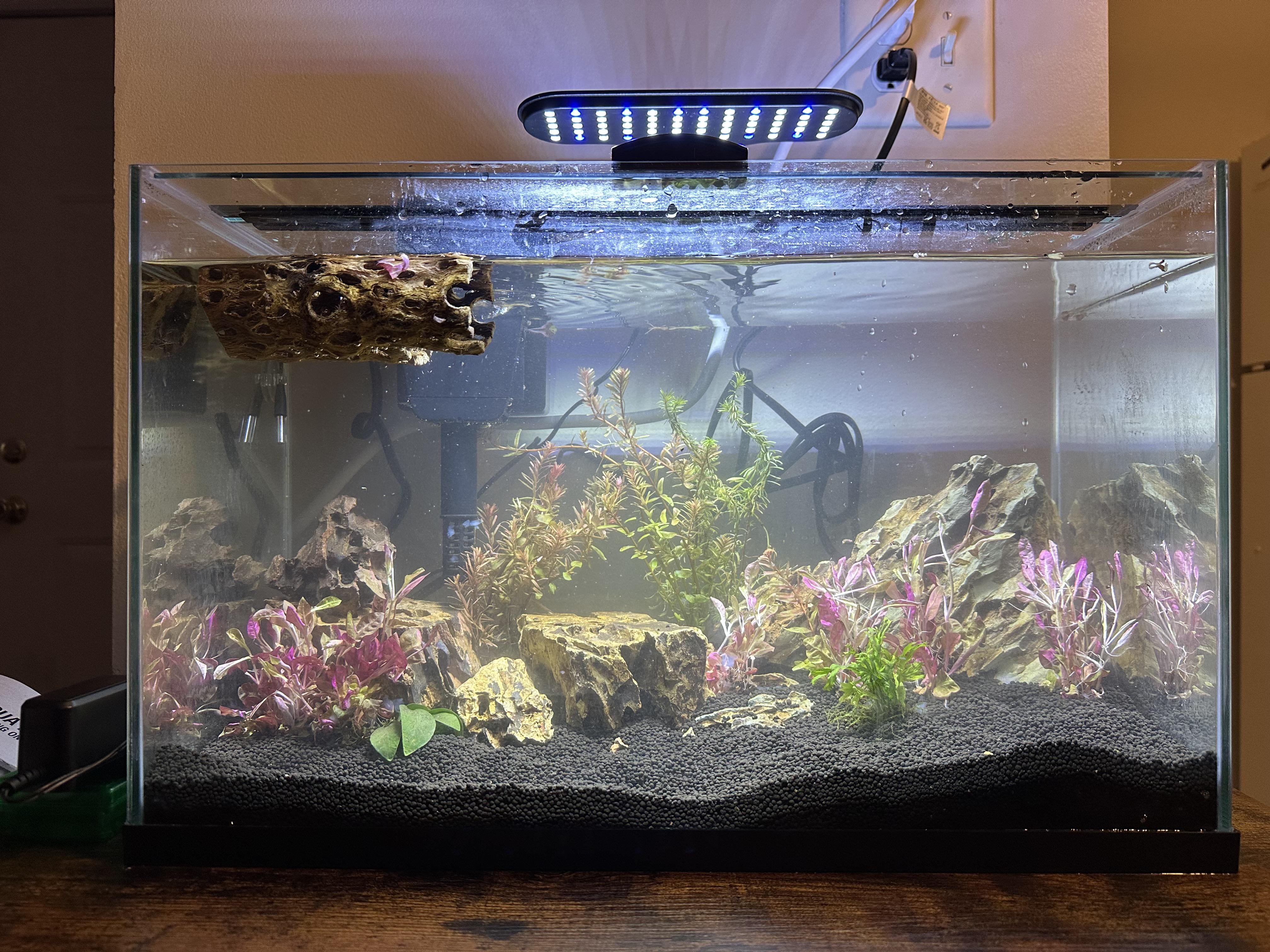 The cholla wood needs to sink, and my friend is getting me some cherry shrimp and assorted plants from his tanks, but hopefully once it cycles this 10 gallon will make a good home! No betta yet, for those looking.