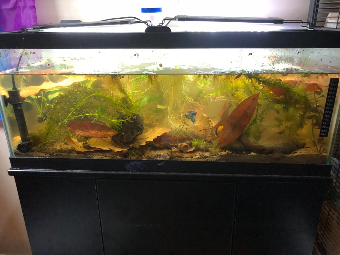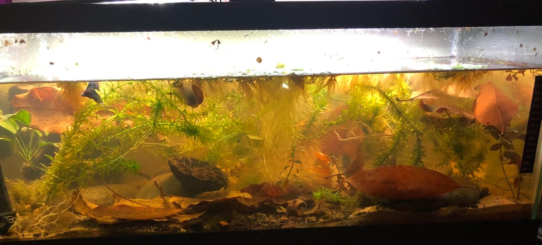 20 long, with my male betta Slushi, mystery snail, neocaridina shrimp, and 3 black Khuli loaches! https://www.reddit.com/gallery/1phvhjy Posted by RevolutionaryToe6677