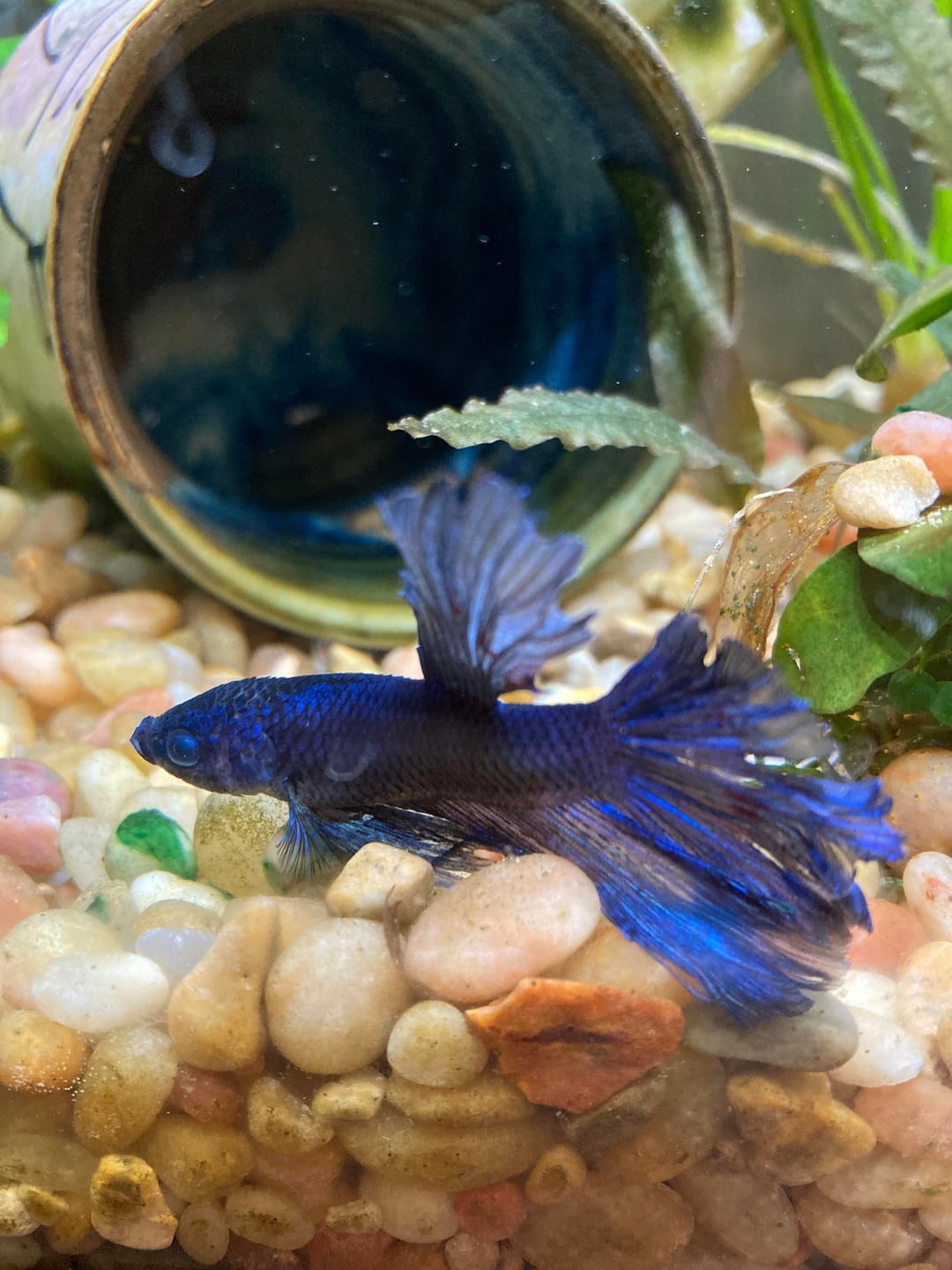 He’s between 6 months, and maybe up to a year, he was juvenile when we got him 6 month's ago. He's in a 10 gallon planted tank. We noticed yesterday he was quite flat, lying on the bottom of the tank. He's still able to swim to the surface for air but didn't eat the last two days now. He sinks quickly once he breathes so I'm wondering about à swim bladder issue. We gave him an epsom salt bath yesterday and he's a little brighter today – sitting upright on the bottom instead of laterally and his fins arent as clamped. We also added a little salt to the tank to help w osmoregulation (20g sodium chloride). He eats (normally) Aqueon betta food and North fin betta bits – 1 of each BID, which we found was optimal for his body condition. We did a 15% water change yesterday, parameters were 0 ammonia, 0 nitrite, 5 ppm nitrate. We dealt with some fin rot à month ago and the fins are growing back.