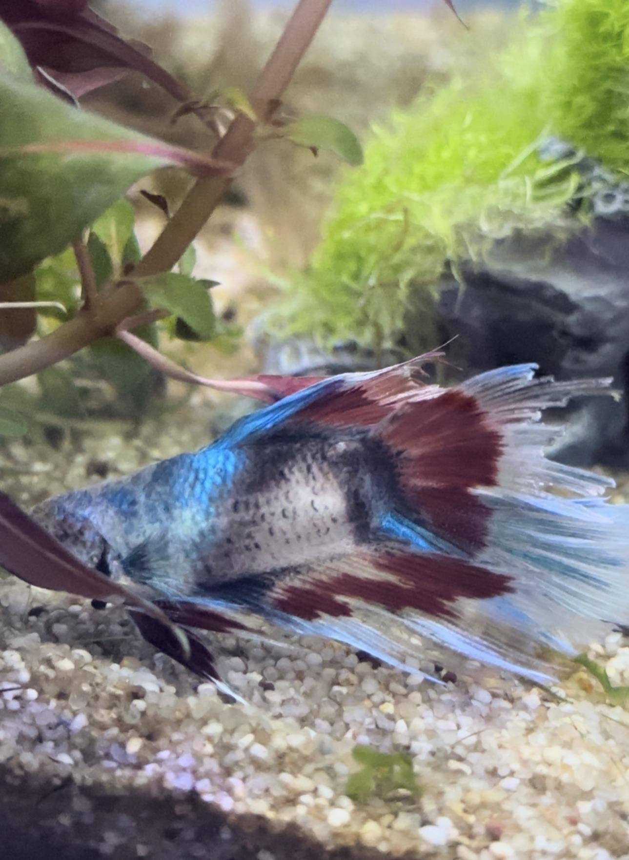 I used to have a lot of dragon stone in there which maybe he could’ve ripped his fins on? or at one point i had some green neons and one was a nipper so i removed them and put them in my 60L but this was months ago and his fins haven’t really recovered much! 🙁