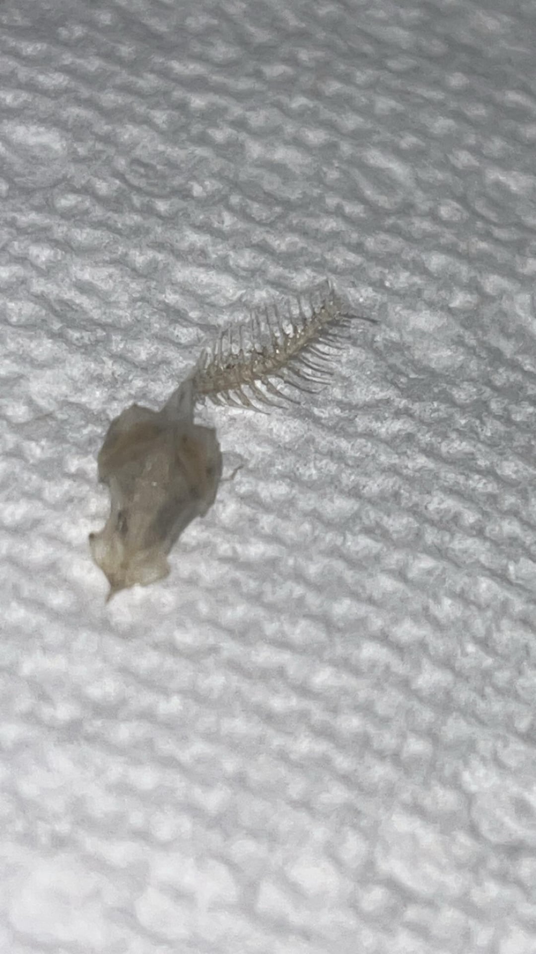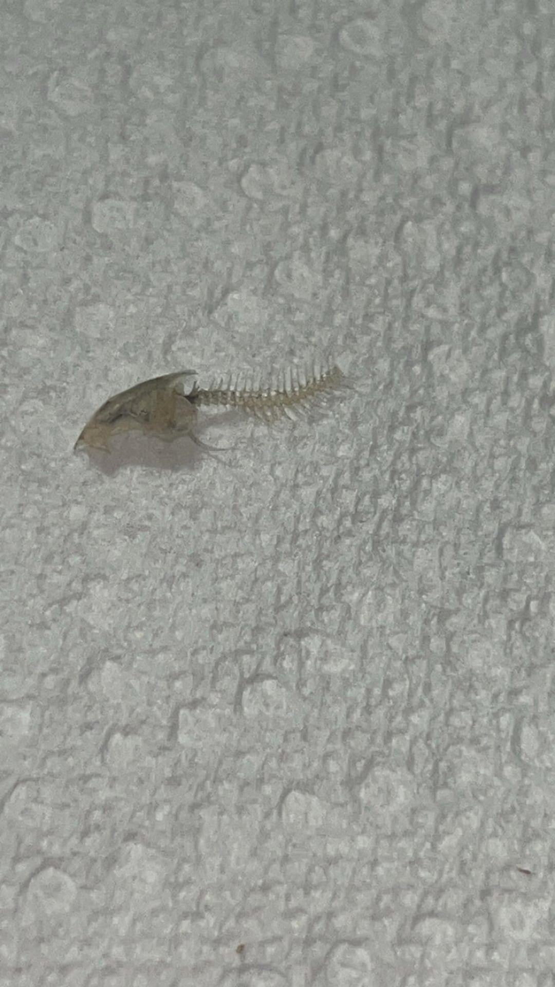 this is a corydora skeleton from my tank that passed away, i let the snails clean the flesh and now this is what’s left. Posted by Mindless_Divide3250
