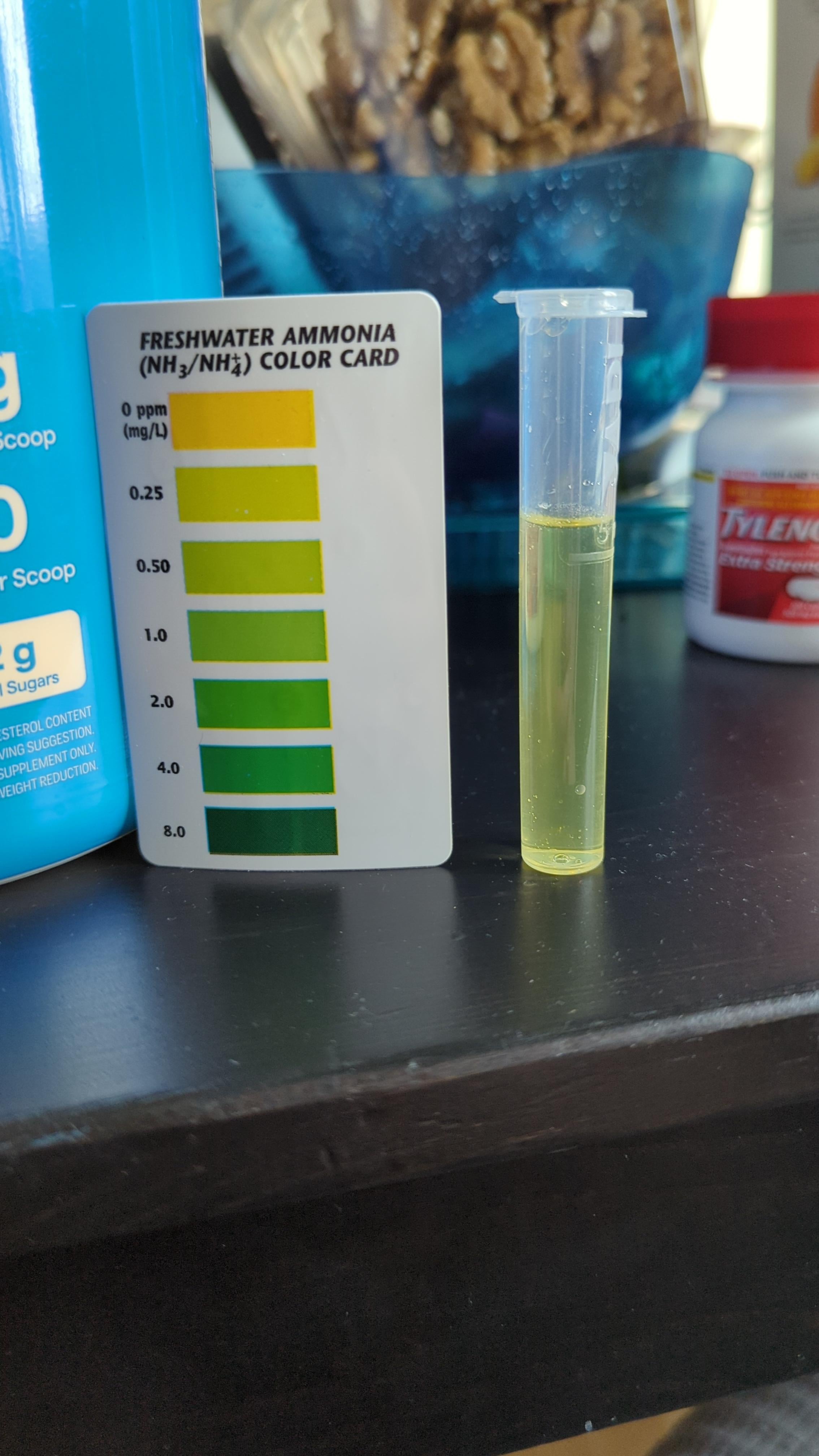 Could anyone help me read what ammonia level my tank freshwater is at? Are there any in betweens? this is my first time using one so I appreciate it. Thanks!