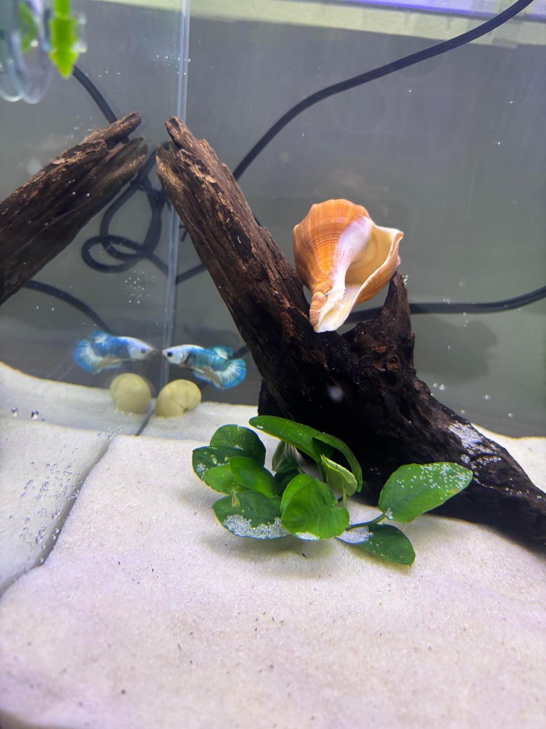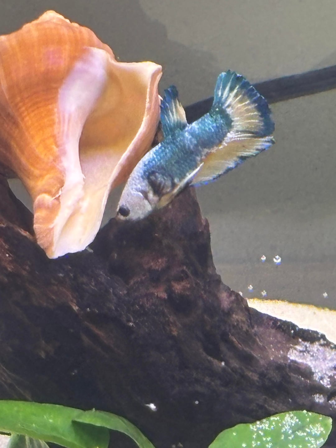 Hey yall. So I was sold this betta as a “blue marble male”. Recently it’s had some minor floating issues, along w an enlarged stomach or possibly egg area? which I originally thought was a swim bladder issue, but maybe it could be constipation? The first photos are the days the betta was introduced to their new tank. On another note, I think he may be a lady. But I cannot tell. I am thinking this because of the smaller ventral fins, and shorter fins over all.