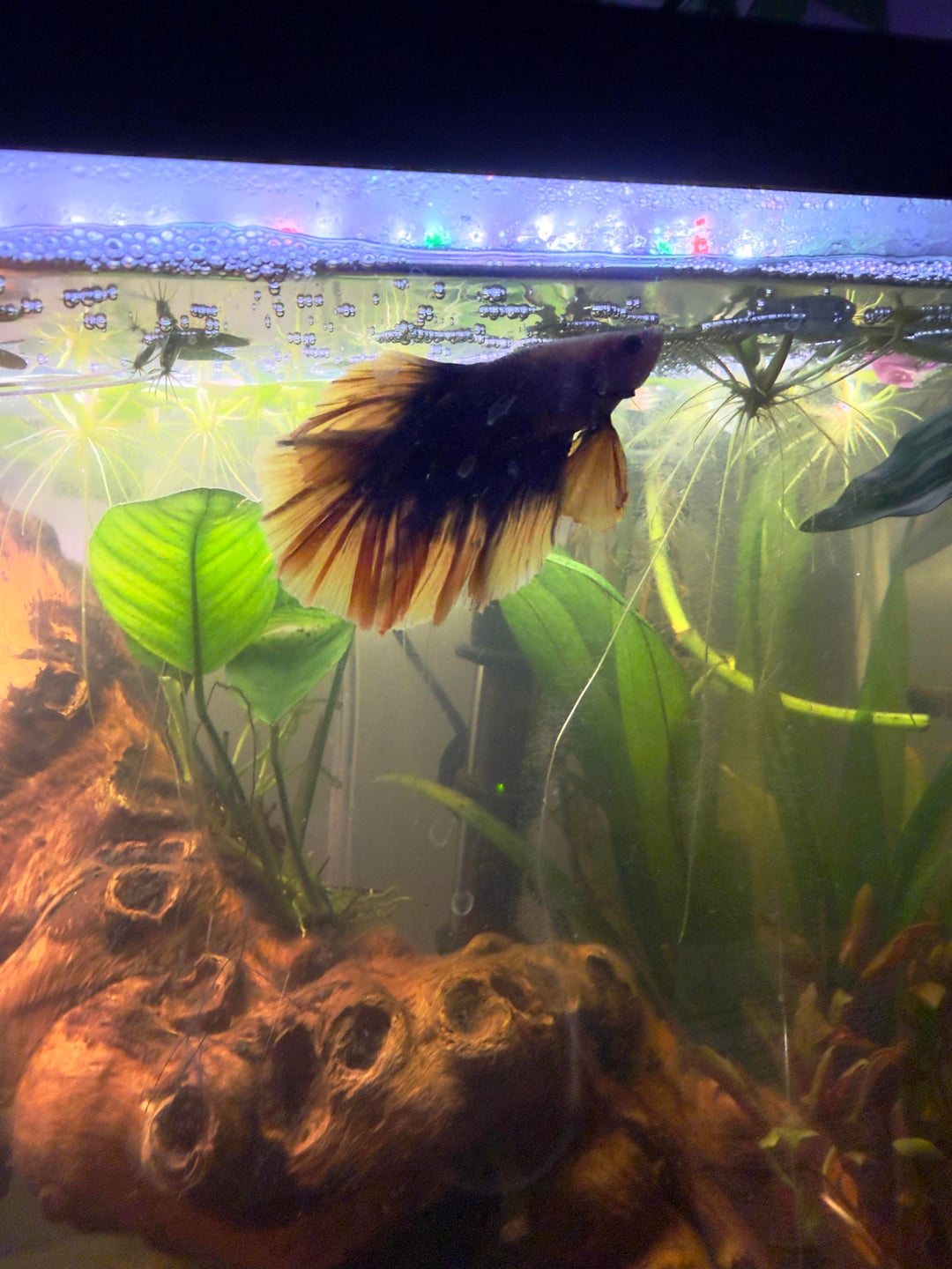 My new betta's fins have started getting a bit darker, although it's not around the edges. Is he just changing color or is this fin rot? First is before, next two are after.