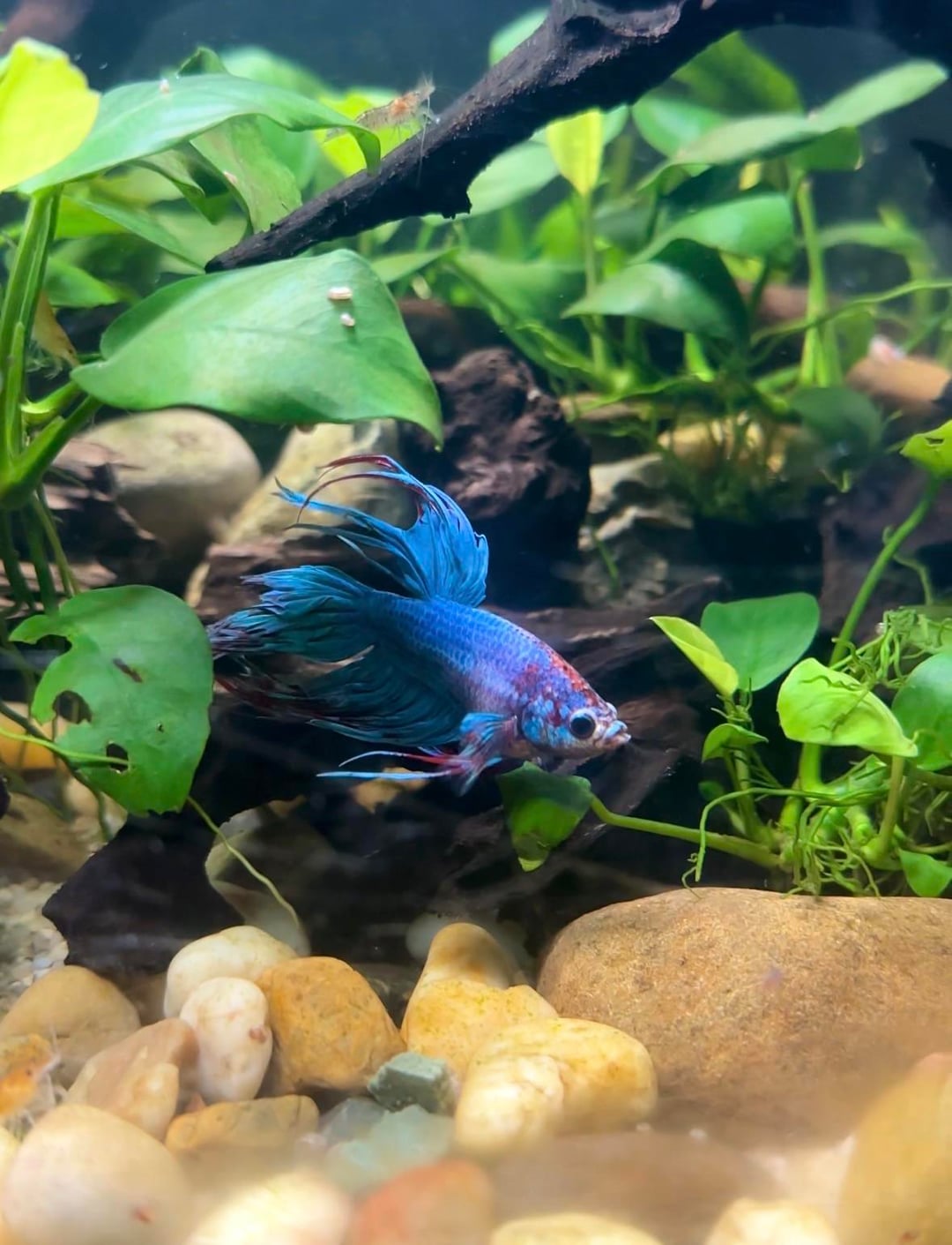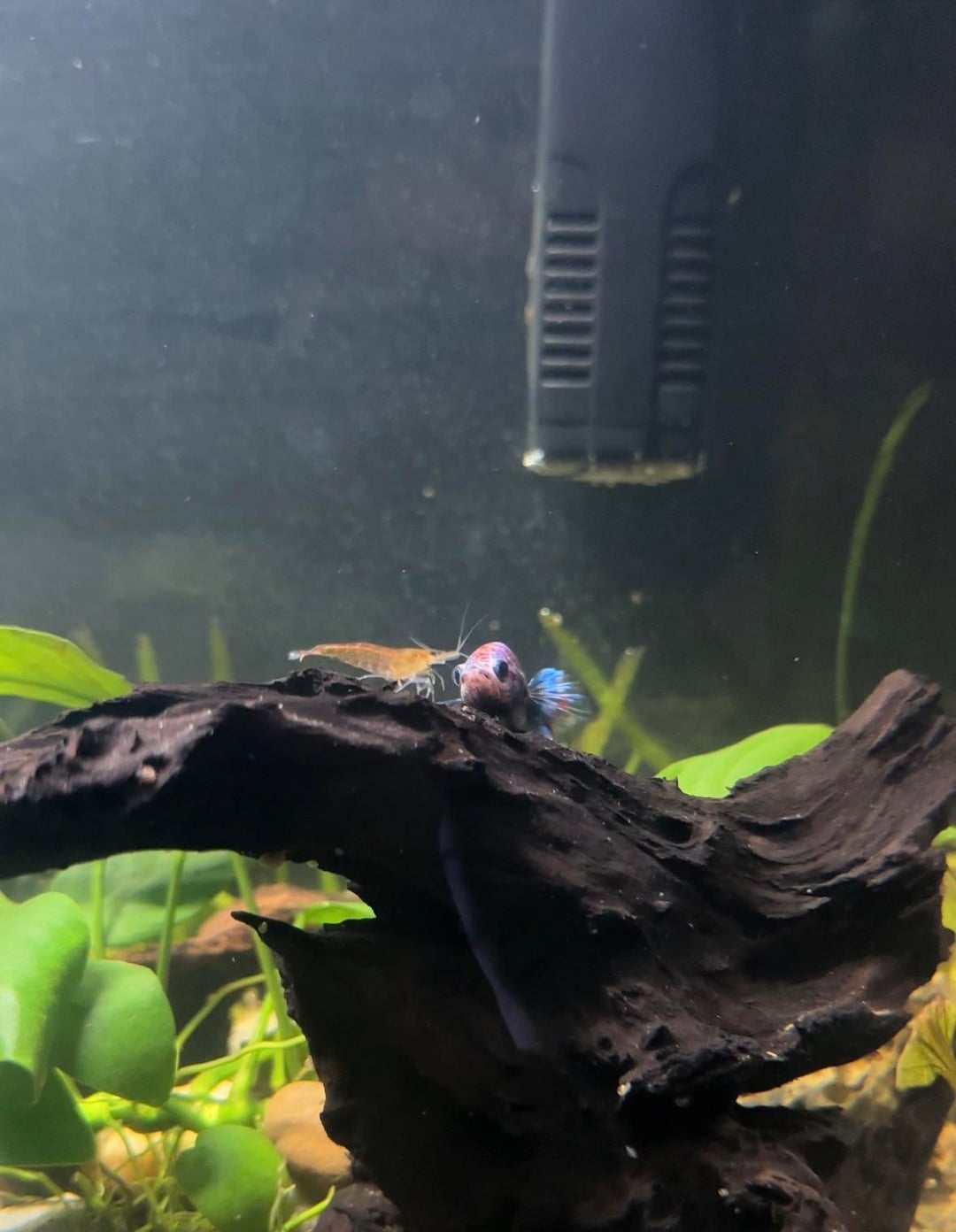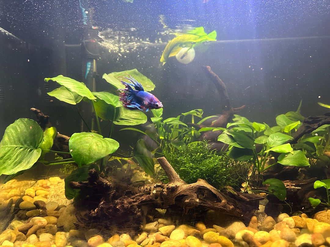 I have a 64l planted tank with a male crowntail, shrimp and snails.