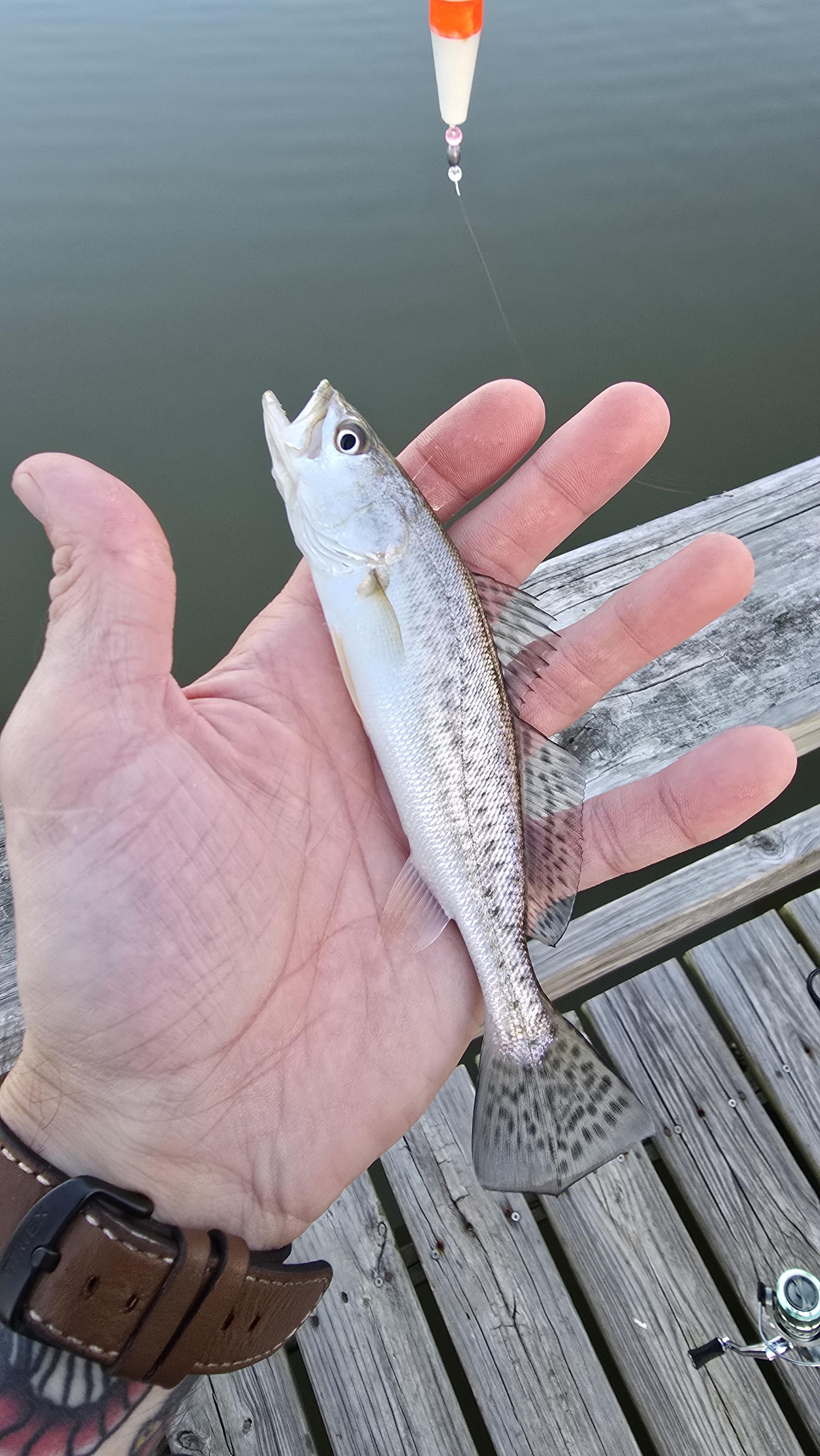 Speck on a 3", live shrimp, 1/0 circle hook.