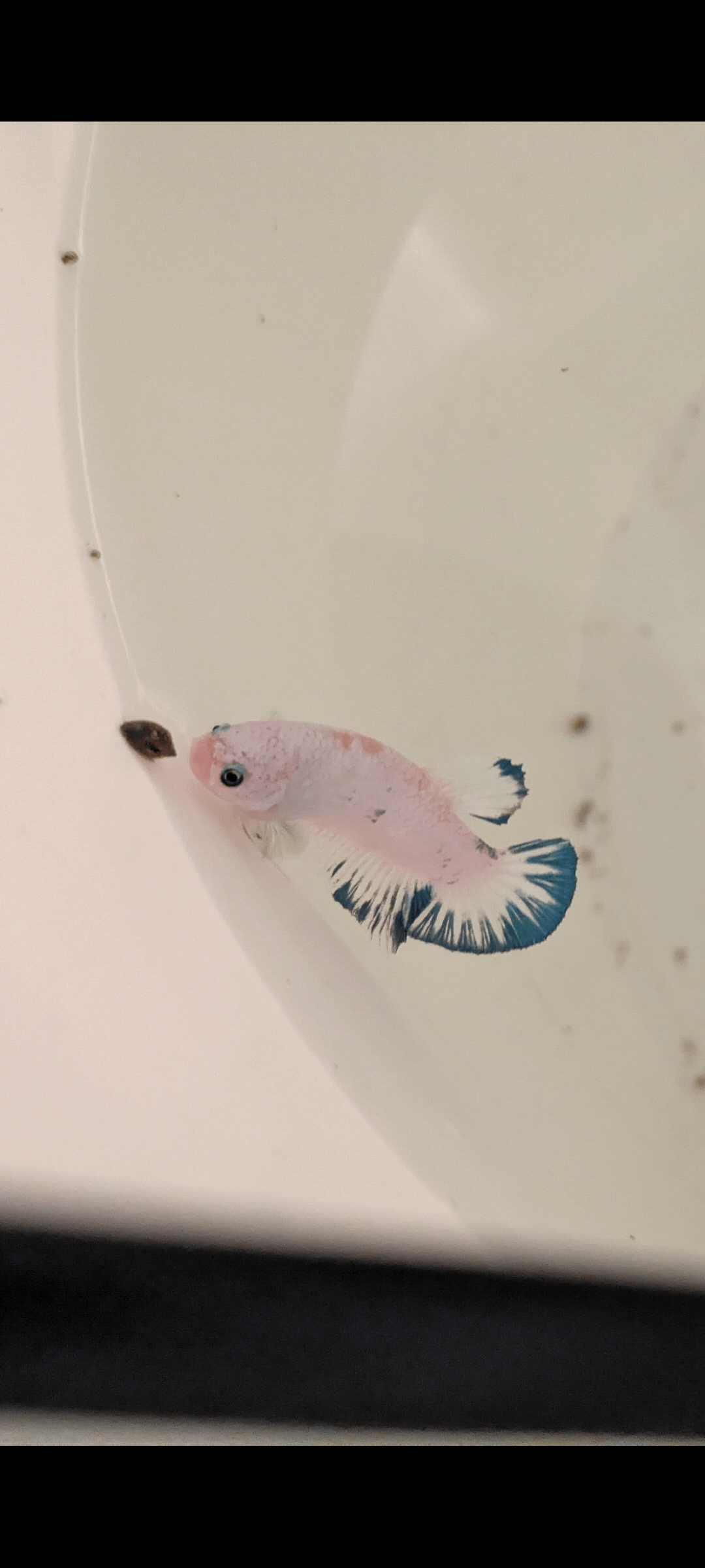 The baby Blue Rim I bred and am developing, is very angry at a snail 🐌