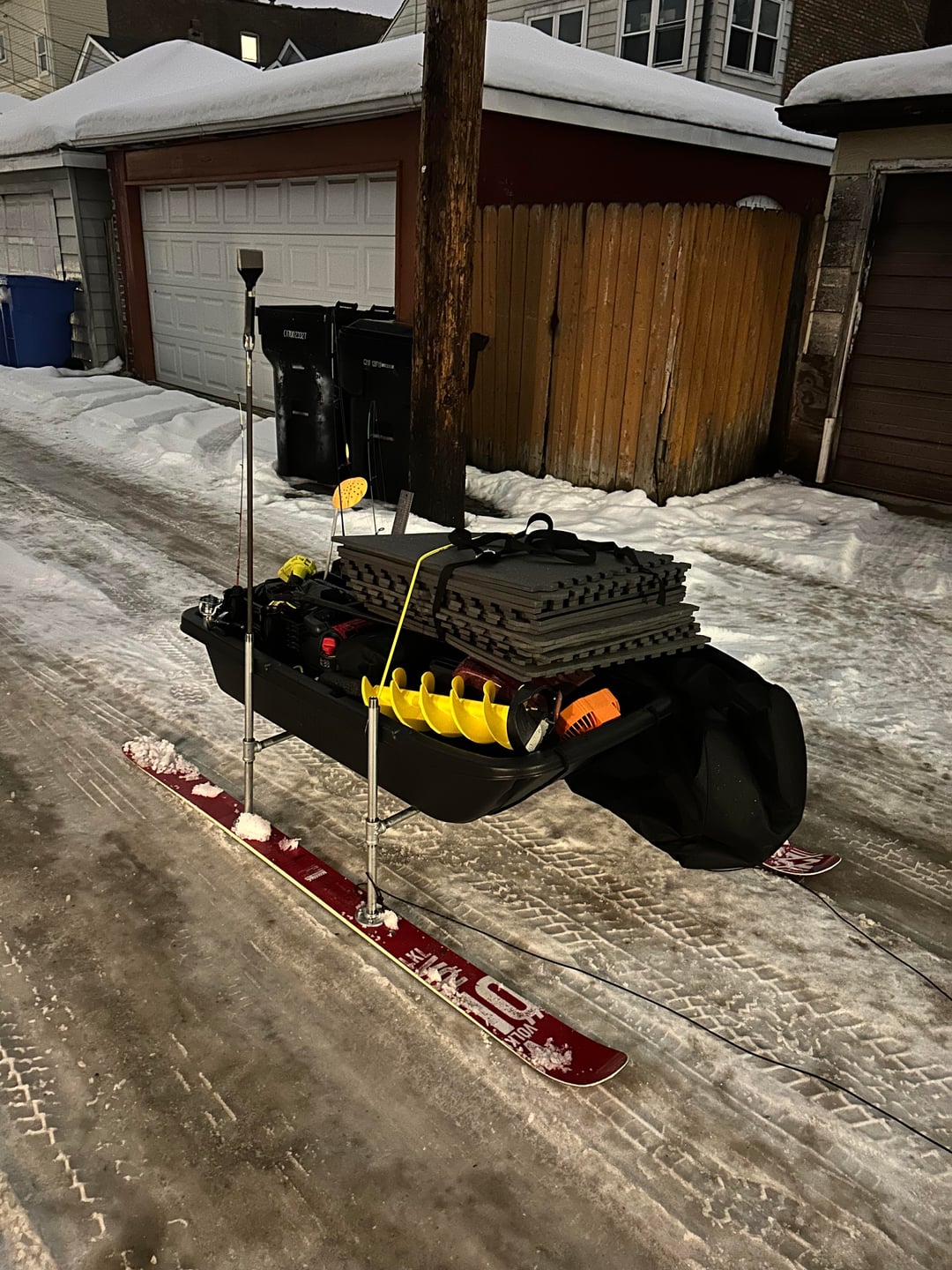 Built a smitty sled for my new Clam X400. Got the skis for free on Facebook marketplace. Only caught dinks but not too bad for first ice!