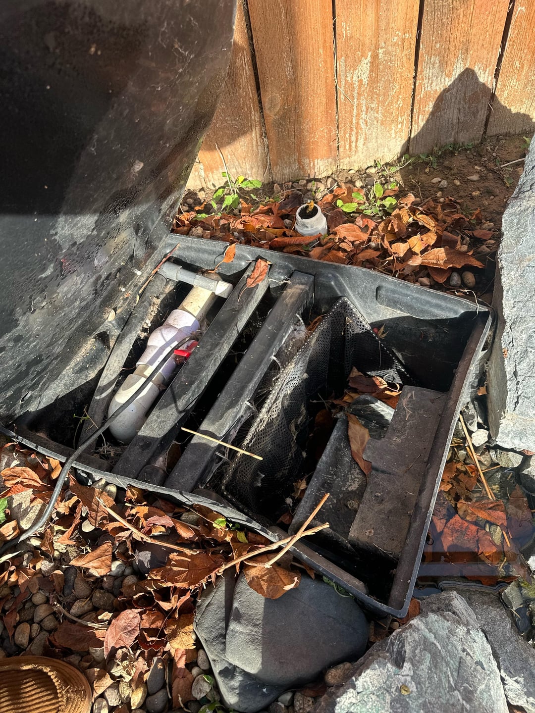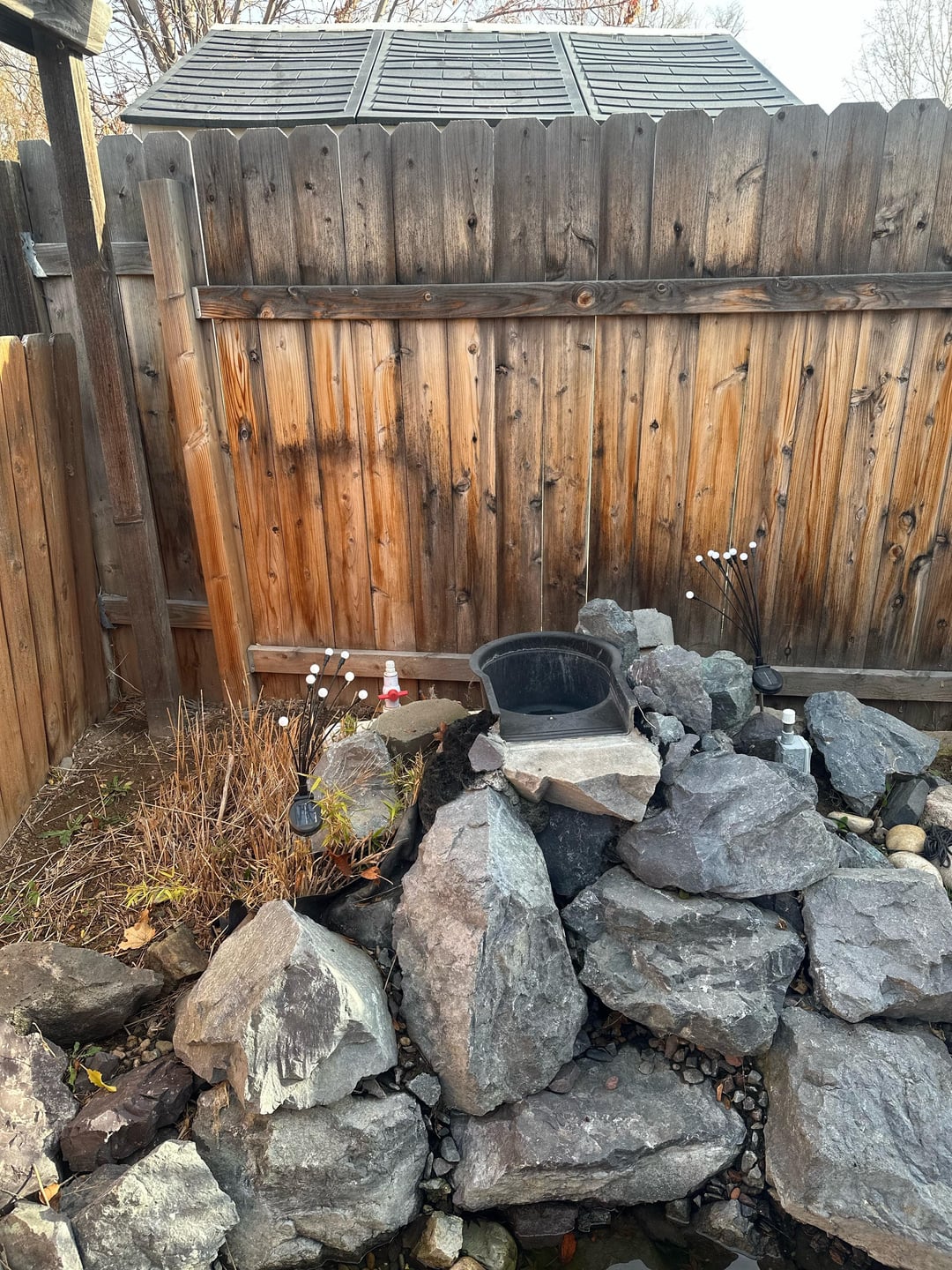 Edit: I’m realizing in retrospect, that filter/pump situation already there might be a waterfall coming down those rocks. I don’t know how to help you get it working, but that’s probably a good solution.