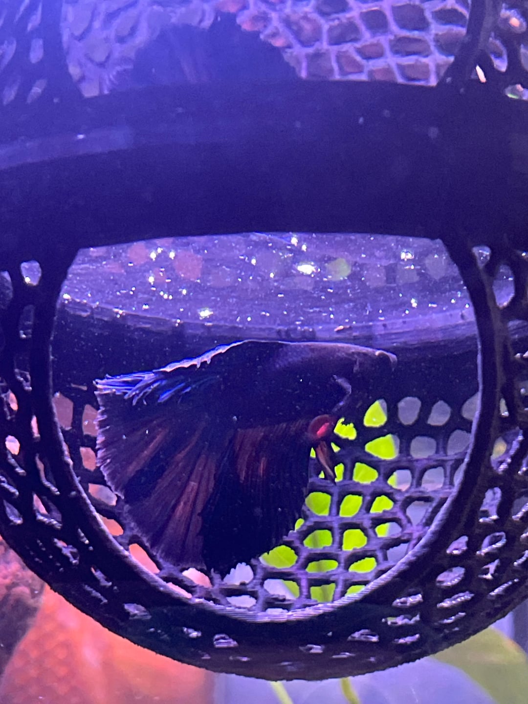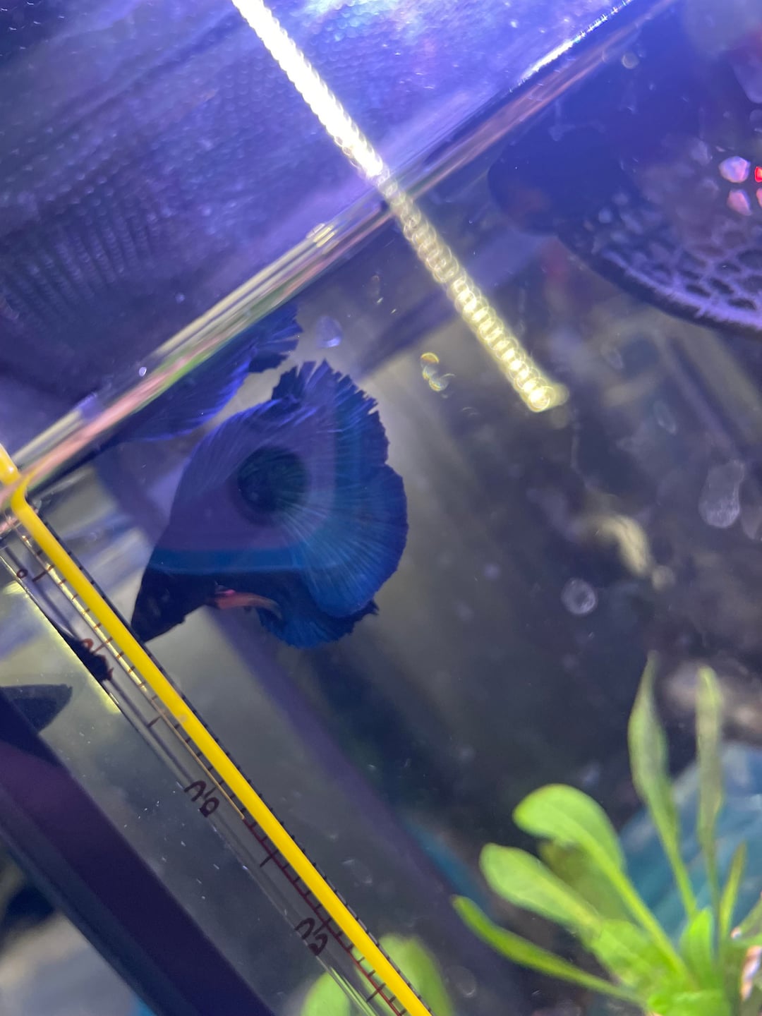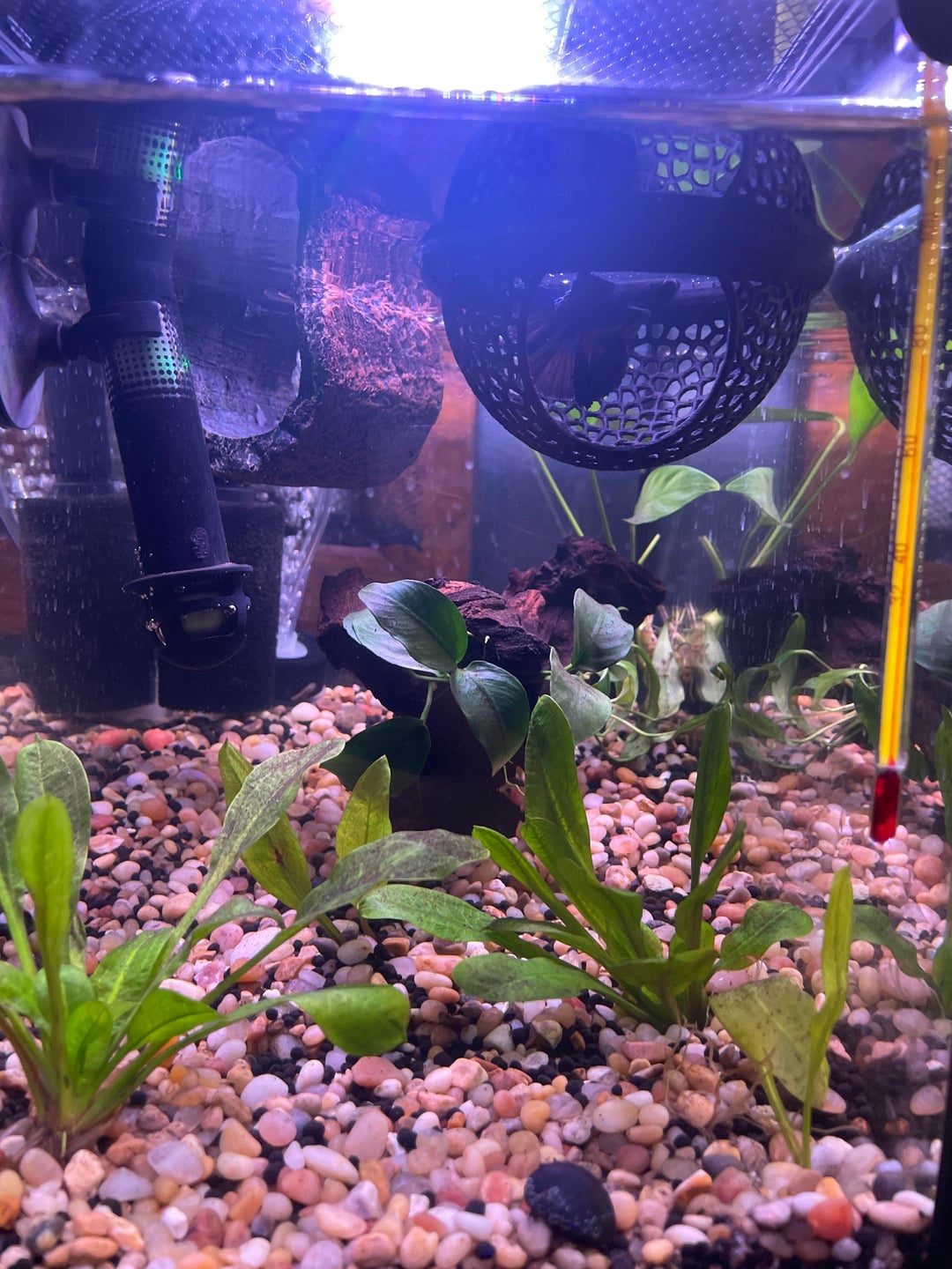 Today I got home and noticed my beta sushi, or otherwise known as fat fuck, has torn fins. He’s been fine last 2 to 3 weeks. I’ve had him we’re almost at a month, but his fin has been starting to rip today and I think he’s been nipping them. I’m not exactly sure why, the only plausible reason I could think is the beta log in his tank or the fact I added a sponge filter so the current was in a strong and it was said that Bettas like sponge filters better than hang on the back filters. Everything else in my tank has been sanded and boiled and cleaned so that it wouldn’t hurt him, the betta log I did not sand though since I thought it would be fine. The only reason I would think it is my beta log is cause I’ve seen another person having issues with their beta, nipping their fin and stuff because their beta log had been chipping off paint. I don’t know if that’s the problem or if it’s cause I added in a new filter everything else he’s been fine with it because everything else has been in his tank for a while, and he has never nipped his fins before. That picture is down below and yes, I know his tank looks a little bear. I am getting more plants and wood. They’re on their way, including some floating plants.