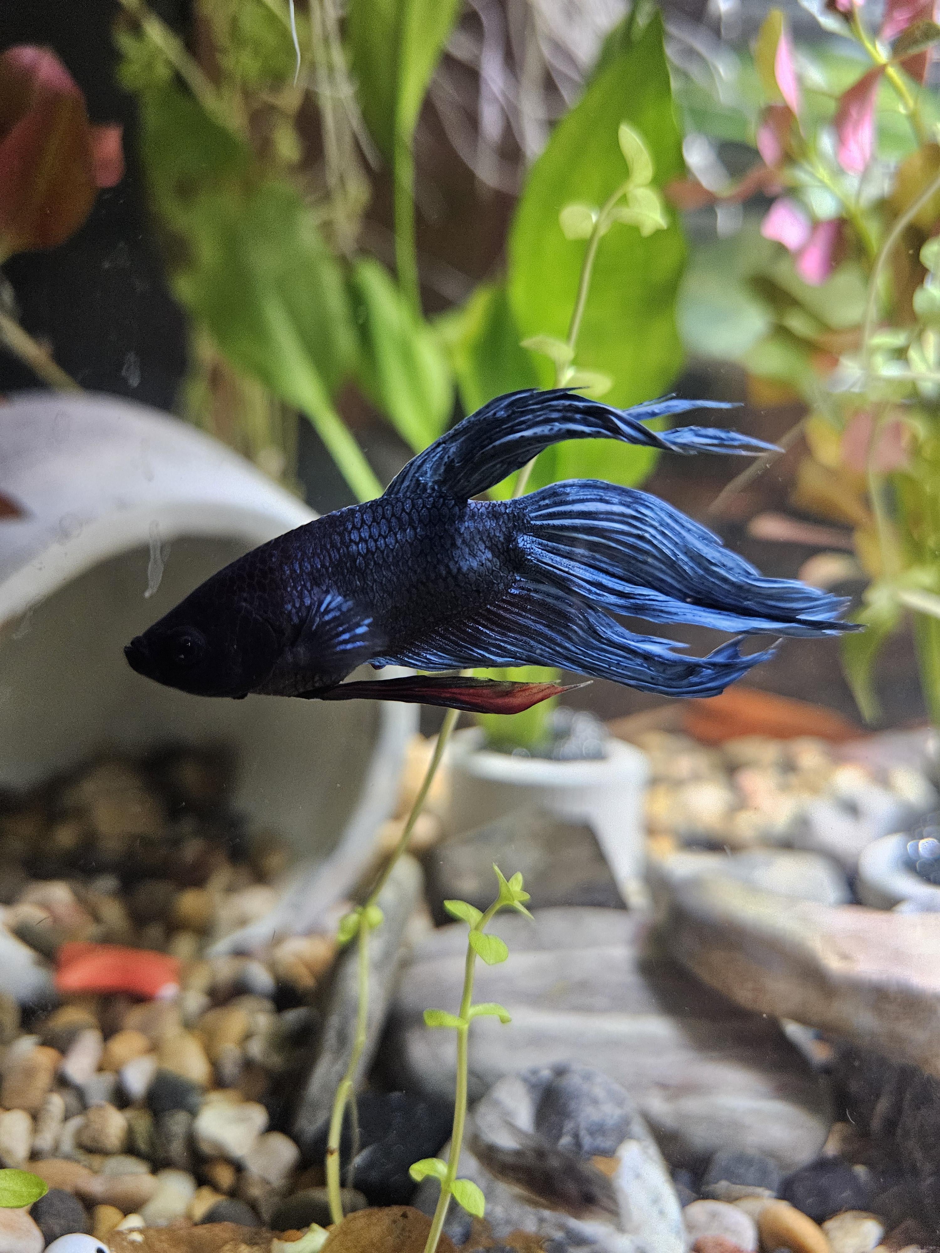We're going out of town from the 20-24, and won't have anyone who would be able to feed the fish while we're gone. We have otos and peppered corys in the 20 gal with him. They should be fine snacking on algae, but I'm not sure how to effectively feed him those days. Currently he gets a few pieces of Fluval Bug Bites 2x a day.