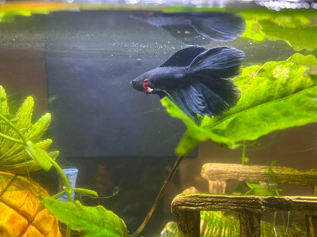 hey all! I recently got my betta from my LFS in a fully cycled tank, with a heater plants and the pineapple of doom (dw(I sanded the edges either a dremel and sealed up the small gaps with aquarium silicone. does anyone know if this is fin rot? If so, please tell me what to do! Preferably wi the out t medication as I am broke from already spending too much money lol EDIT:OMG I JUST REALIZED HE WAS YAWNING IN THE FIRST PHOTO