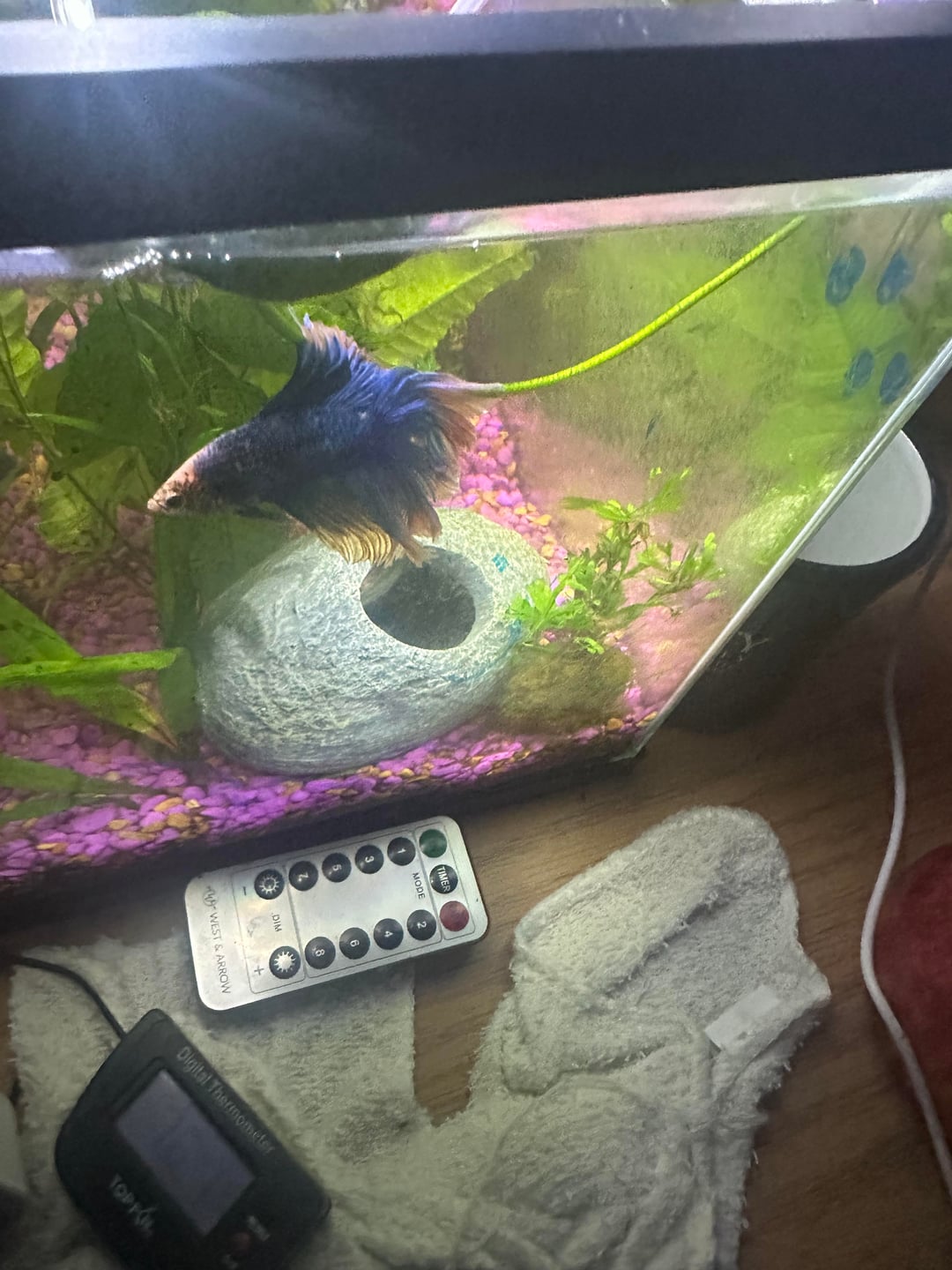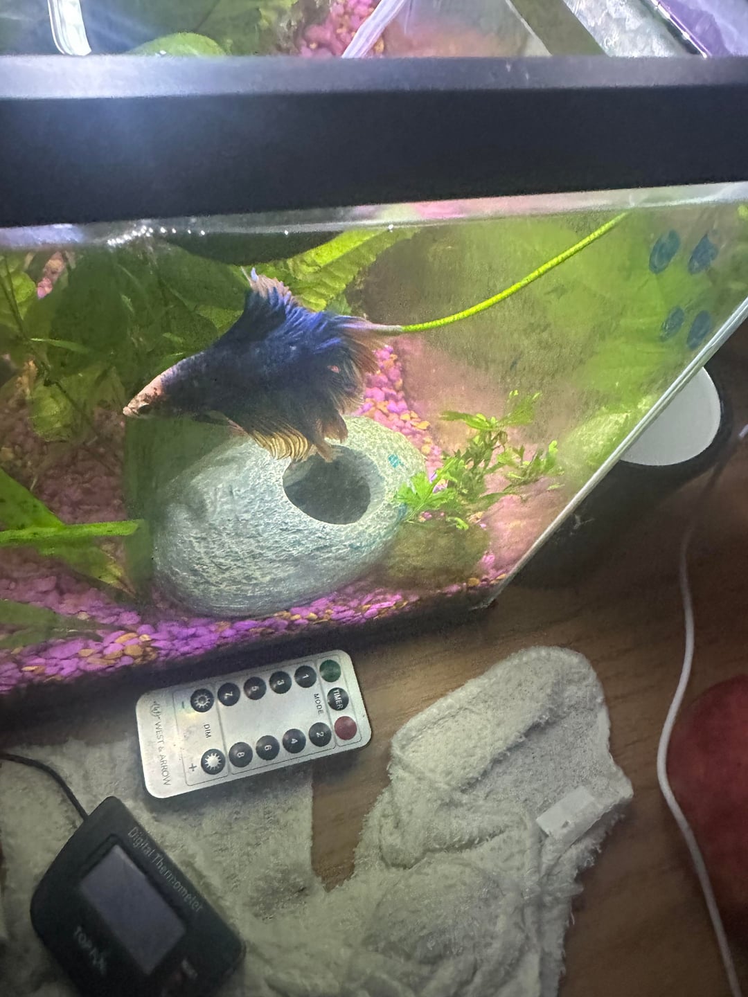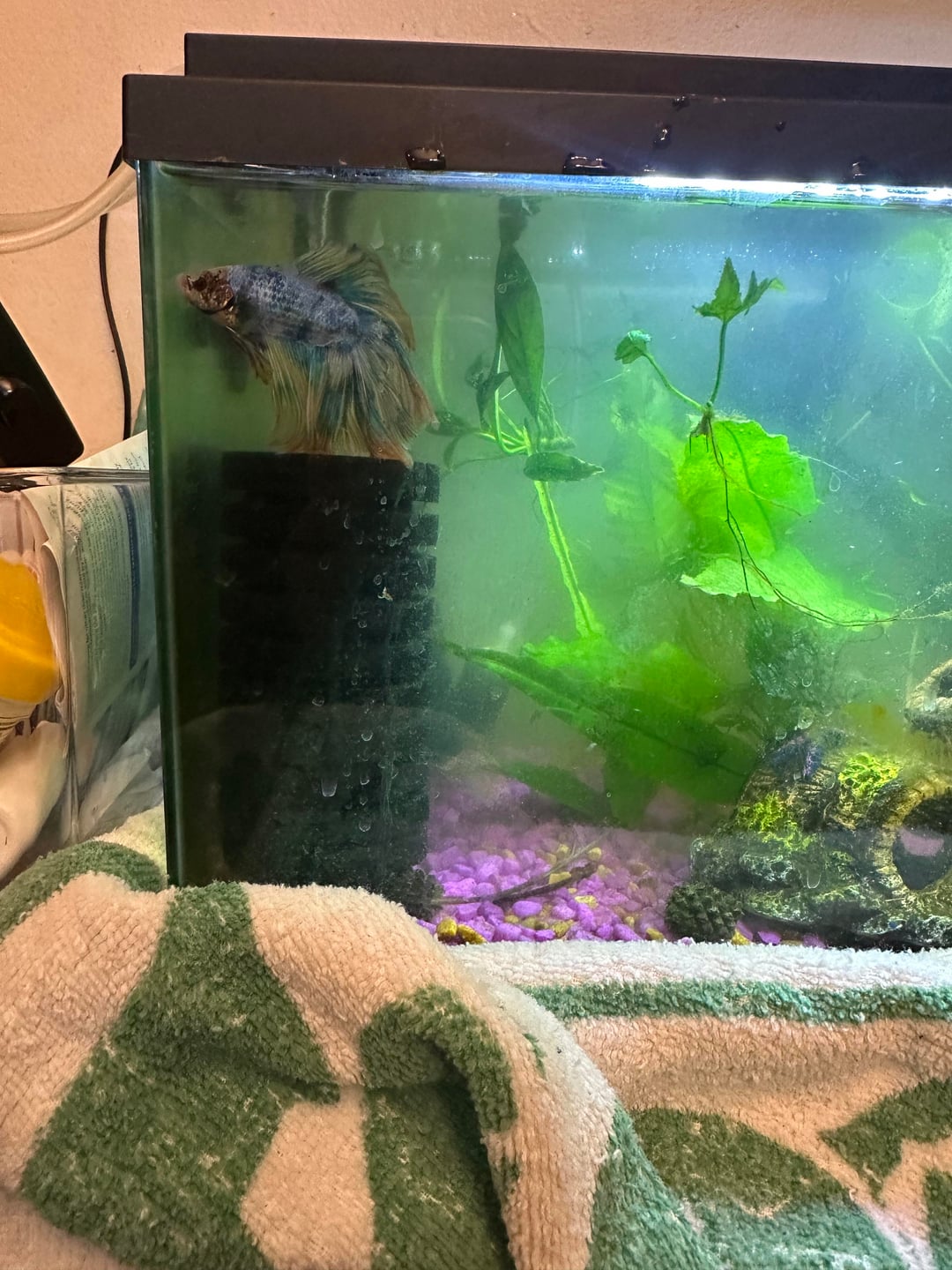 I have had my betta for about four to five months now, and he is a beautiful blue. I heard that when they get stressed they might fade in color and become pale. He was very blue for the first couple of months, then I started noticing some patches turning white. However, he is very lively, eats well (three to four pellets per day), and always swims up to me when he hears my voice.