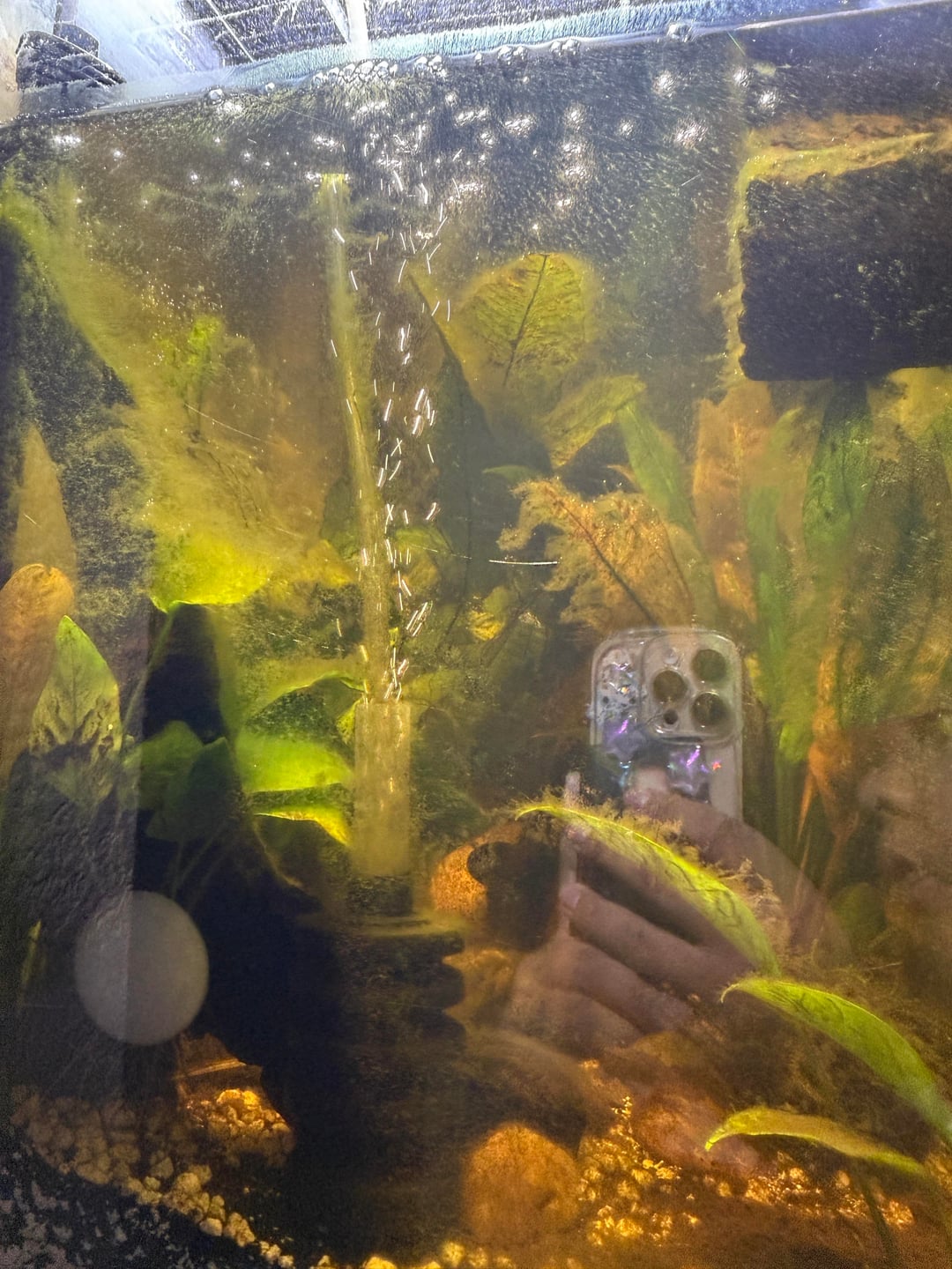 I’ve never personally tried this but my theory is if you want to keep an aquarium at home without changing water for 3 months you fill it to the brim with duck weed, water sprite or hornwort or both, and Java Moss. If you can get a handle on that, then add other plants.