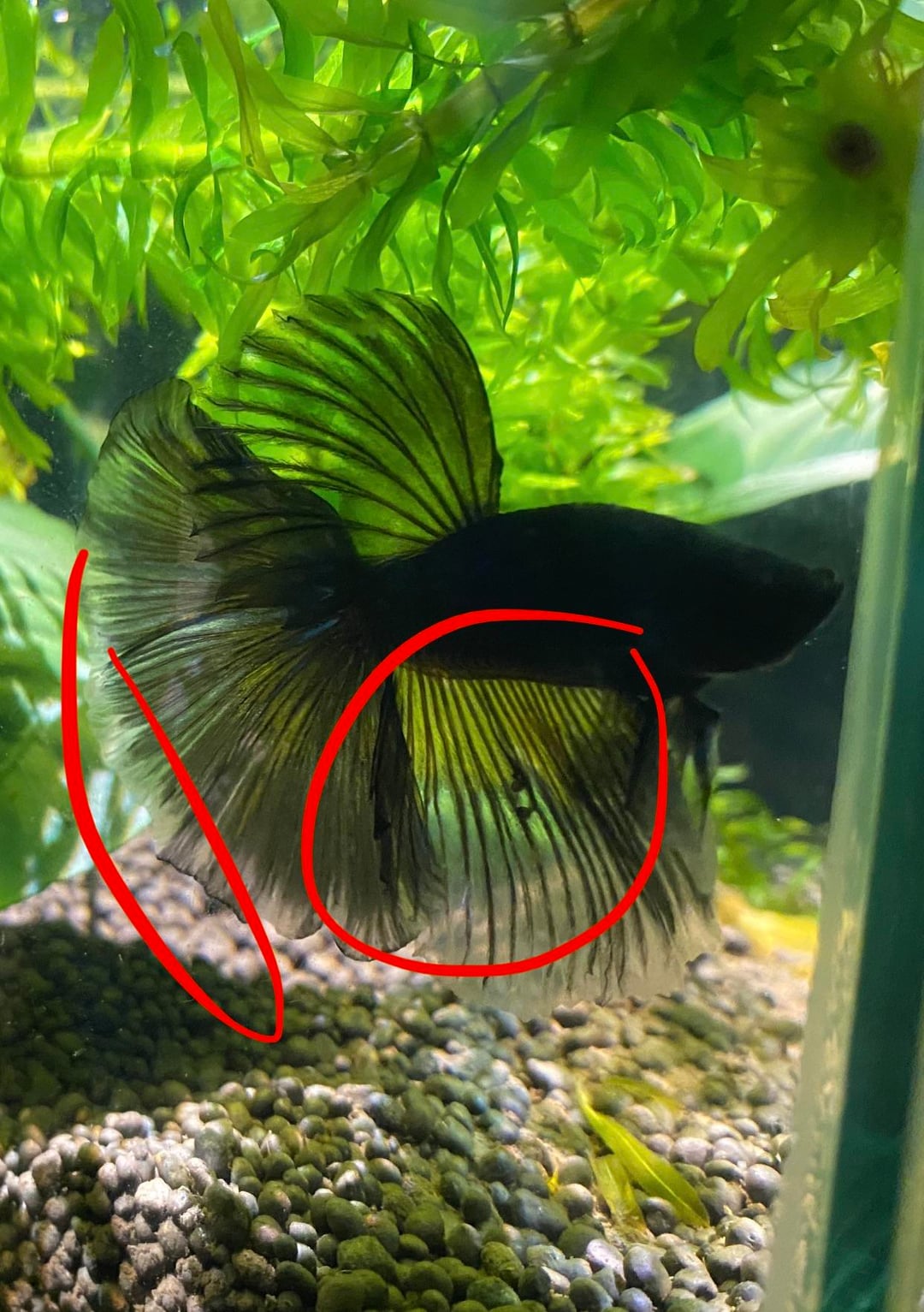 Is his fin okay? The one part that I circled is bothering me.I wonder if its normal or not.I also read that black color on the tip of their fin is one of fin rot symptoms and im getting more concerned.