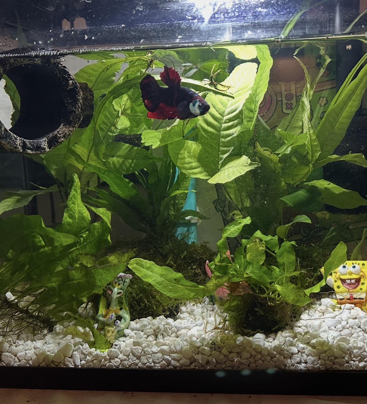 He seems like a happy dude. Very active and loves to build his bubble nests by his floating log. He’s a big boy with a bad attitude and I love him!