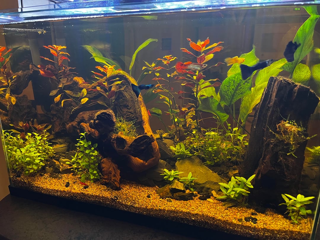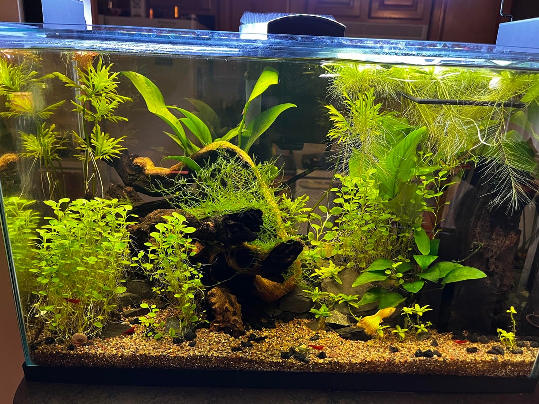 Lost a few friends along the way, fish and plants, but nice and stable now. Tank is about 5 month old total.