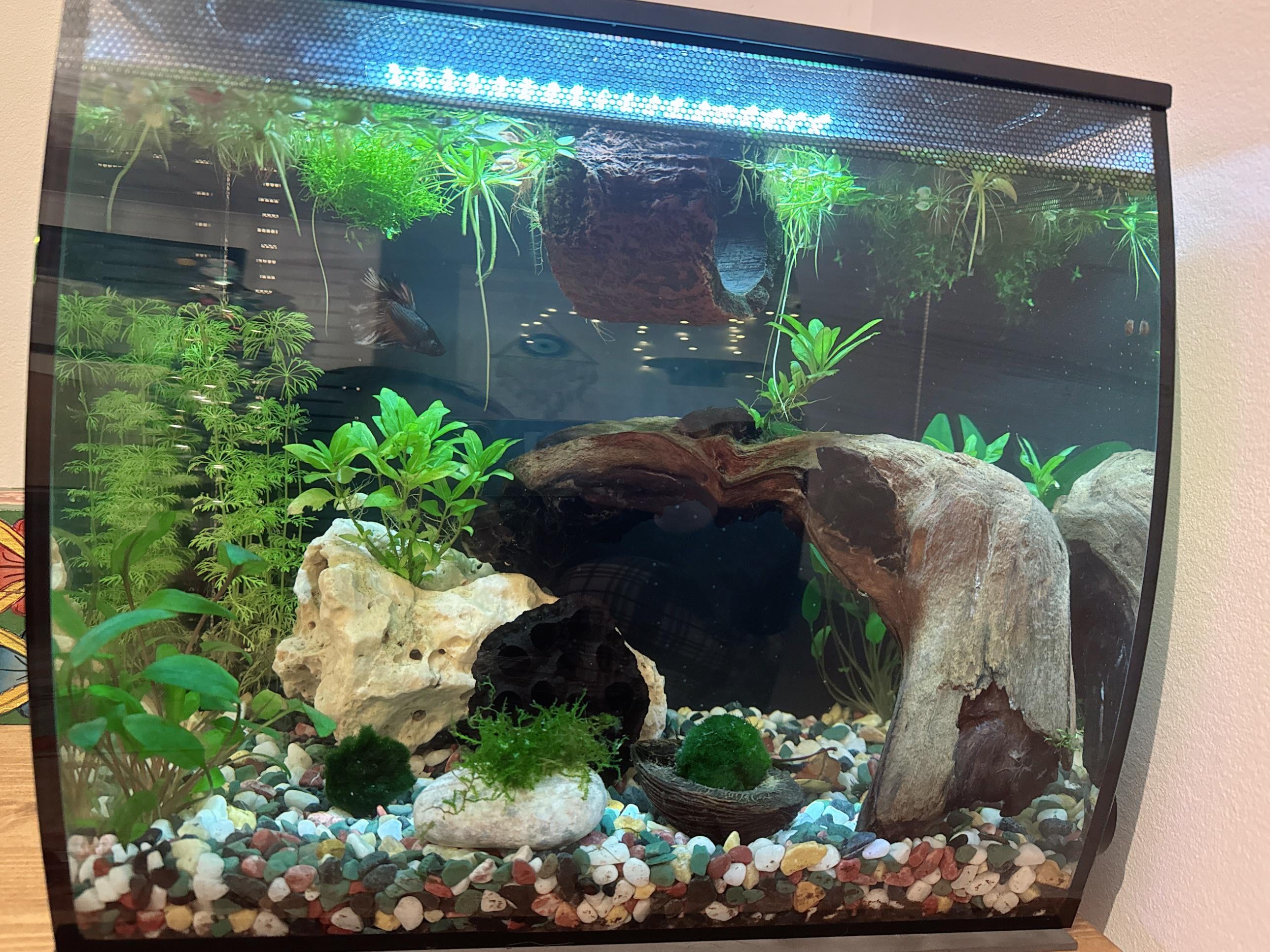 I know it’s very very basic at the moment and I do plan to upgrade to the bigger (20 gallon) one once I get a good grip how to maintain it well, but even after one month it brings me so much joy to look at it ✨🥰.