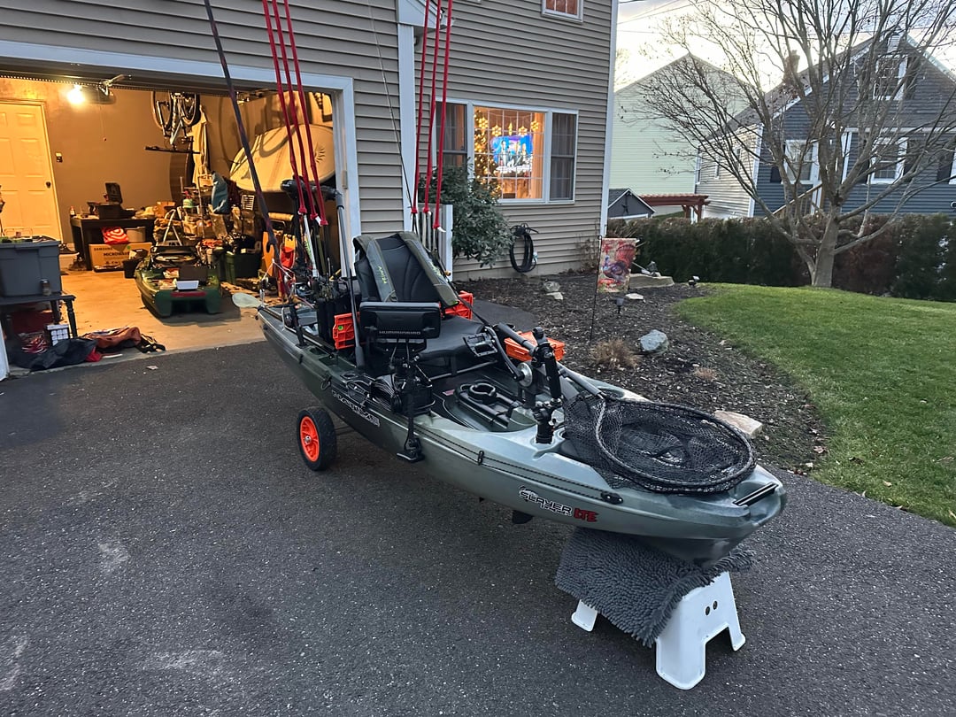I’m excited for next tournament season with this. I didn’t want to go down the road of getting a trailer for a full blown battleship tourney rig. Nothing against that route at all, but for me I enjoy the simplicity of kayak fishing, and I want to keep it as simple as I can for tournaments (no trailer, 1 graph- Helix 7 MSI, no live scope, stern motor only w/ tiller) and then have the option to leave the graph and motor/battery at home for fun fishing. This is also me justifying all of this to my self so I don’t go and spend another outrageous amount of money on this hobby lol.